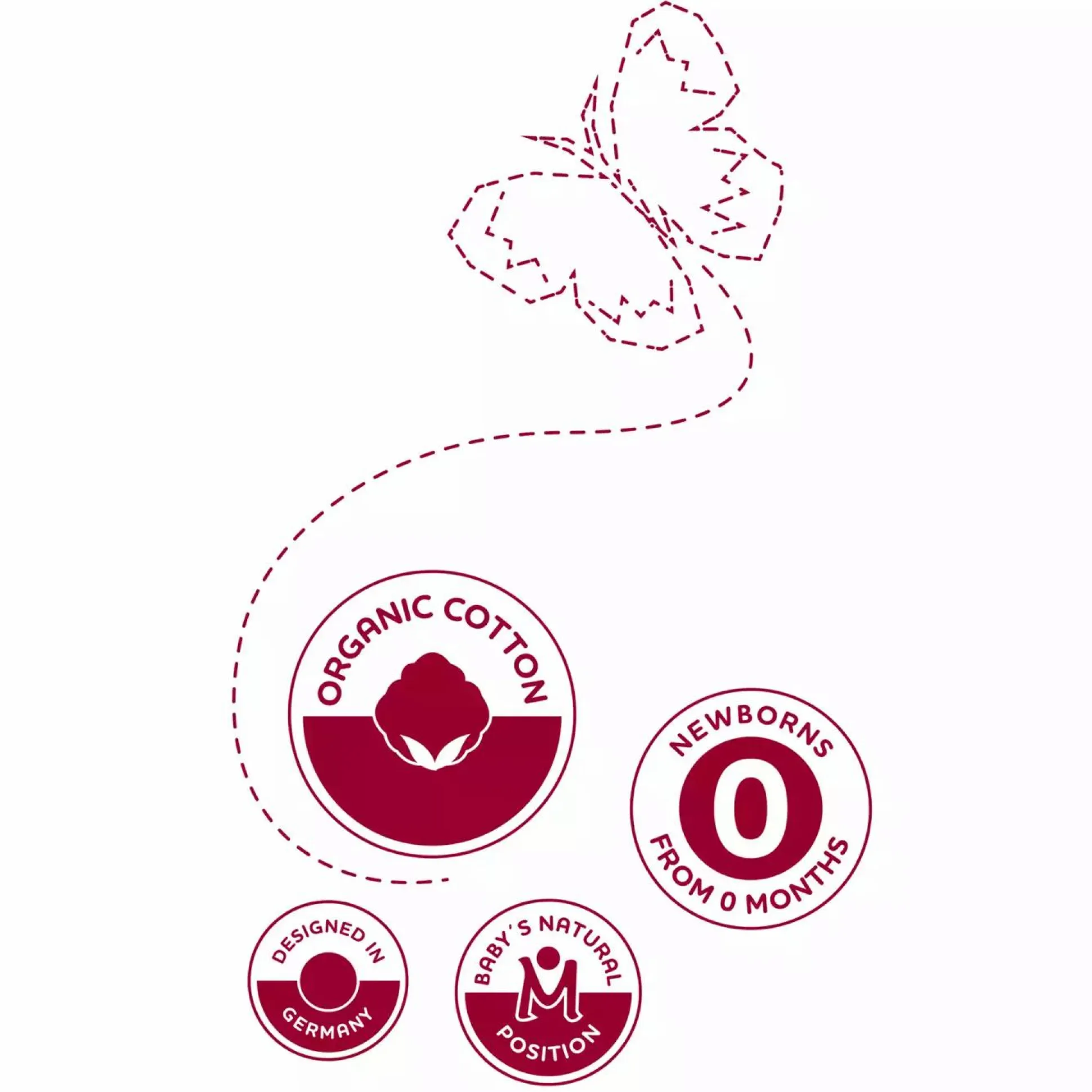 - optimale M-Position des Babys – Anhock-Spreiz-Haltung