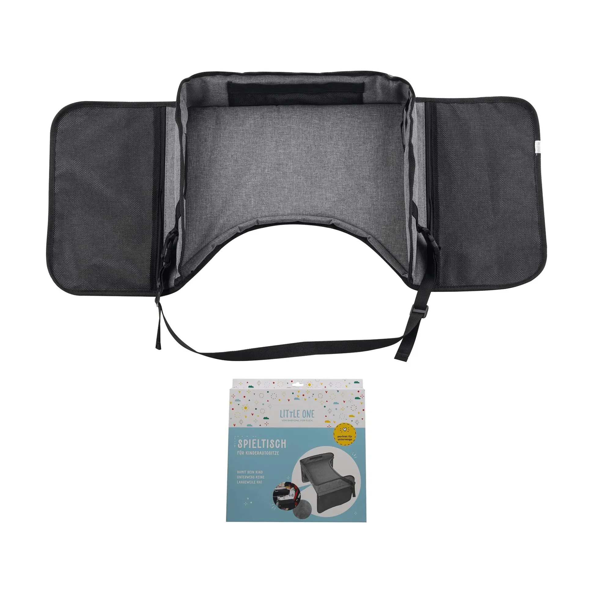 Der Universal-Spieltisch von LITTLE ONE ist die perfekte Begleitung für deinen kleinen Schatz unterwegs! Er ist die ideale Lösung, um lange und kurze Reisen im Auto, in der Bahn oder im Flugzeug zu einem unterhaltsamen Erlebnis zu machen.Mit seiner stabilen Unterlage und den praktischen Seitentaschen bietet der Tisch nicht nur eine sichere Spielumgebung, sondern auch genügend Platz für die liebsten Spielzeuge deines Kindes. Die praktische Klappfunktion hilft ihn leicht zu verstauen und macht ihn somit zu einem unverzichtbaren Begleiter für unterwegs.