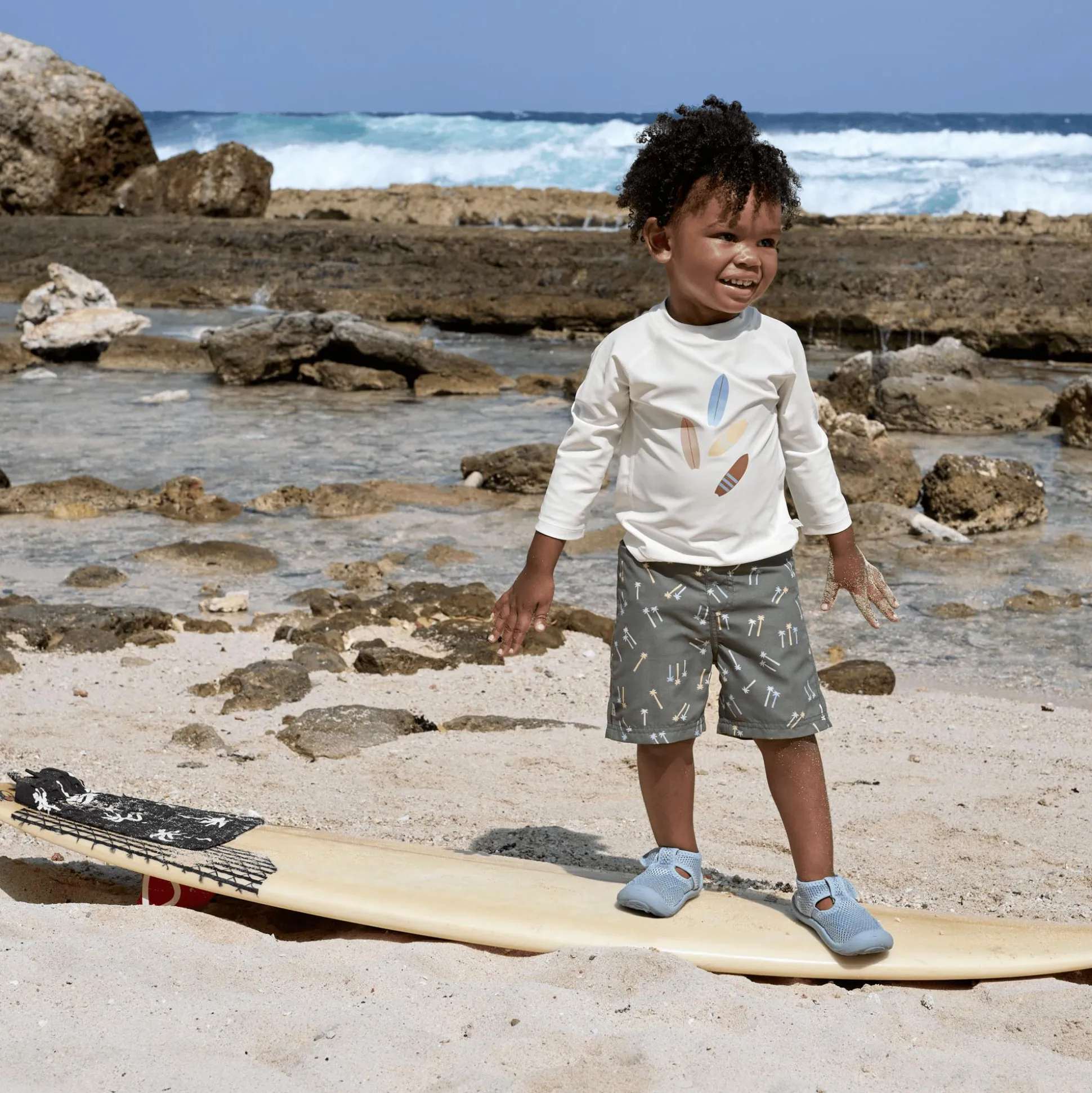 Die UV-Schutz Badehose mit Palmen-Print von Lässig überzeugt mit einem modernen Design sowie ihrer integrierten Schwimmwindel und sorgt für einen unbeschwerten Badespaß. Sie besteht aus schnelltrocknendem, 100% recyceltem Polyester und bietet mit UV-Schutz 80 zuverlässigen Schutz vor Sonneneinstrahlung – sowohl an Land als auch im Wasser.