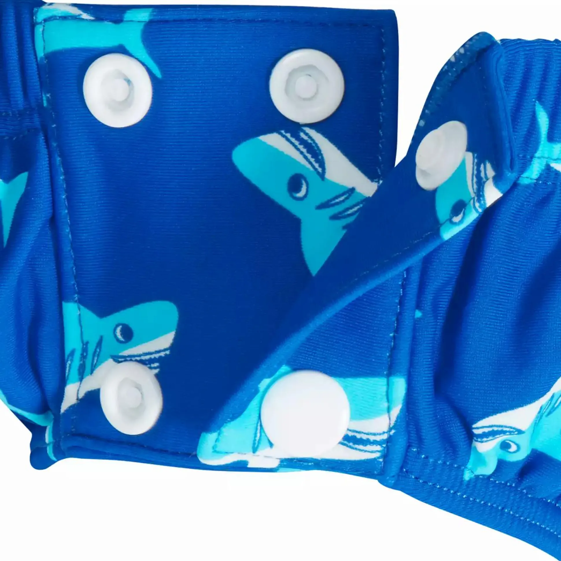 Die wunderschöne UV-Schutz Windelhose Hai von Playshoes verhindert mit dem Windeleinsatz, dass größere Verschmutzungen in das Schwimmbecken gelangen und bewahrt dadurch vor unangenehmen Situationen. Dank der praktischen Druckknöpfe an beiden Seiten kann schnell und unkompliziert die Badewindel an- und ausgezogen werden.