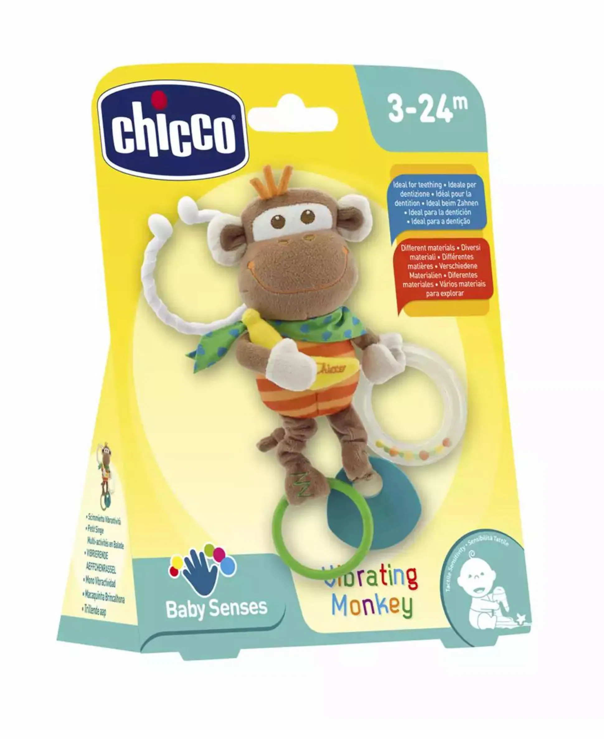Das Äffchen bietet den Kleinen jede Menge verschiedene Spielmöglichkeiten, sodass es nicht langweilig wird: Eine Rassel, ein Knisterpapier und eine Vibration. Alles lädt zum Entdecken ein und macht den kleinen Affen zu einem spannenden Begleiter – auch für unterwegs.