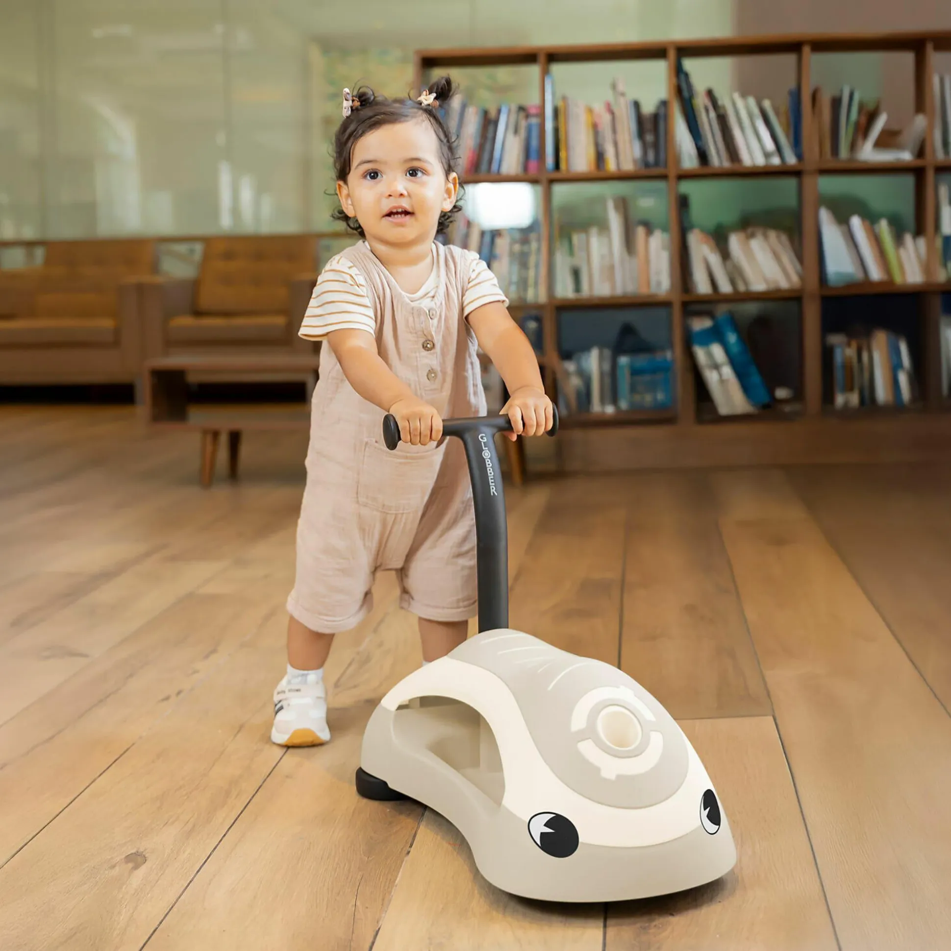Der WALK N’ ROLL 2in1 ECO in der Farbe Kokos Weiß von GLOBBER ist ein vielseitiges Kinderfahrzeug, das sich im Handumdrehen vom Rutschauto zum Lauflernwagen umbauen lässt – ganz ohne Werkzeug. Dreh einfach die T‑Bar um und klapp die Spezial‑Räder ein oder aus. So förderst du selbstbewusstes Sitzen und stolze Lauf-Meilensteine mit maximalem Spielspaß und Sicherheit.