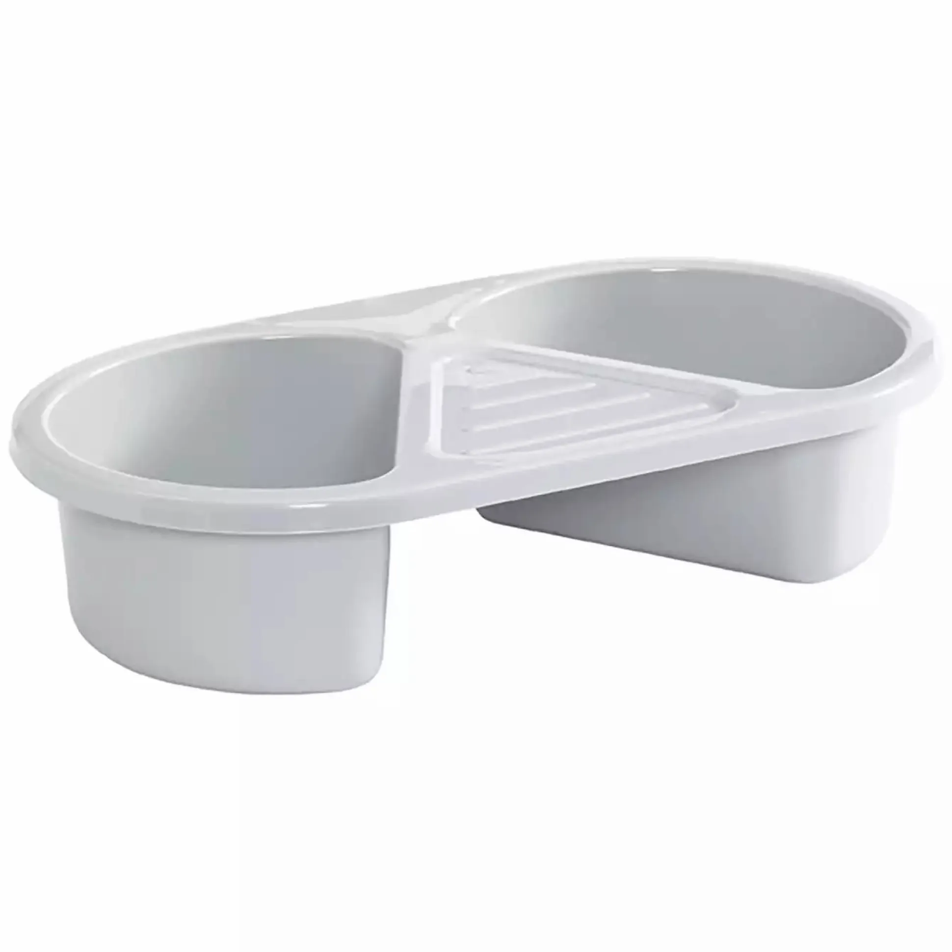 Die praktische, zweigeteilte Waschschüssel von bébé-jou macht ein bequemes Waschen deines Babys möglich. Sie passt auf jeden Tisch und das Badezubehör findet ganz einfach auf der mittigen Ablage seinen Platz.