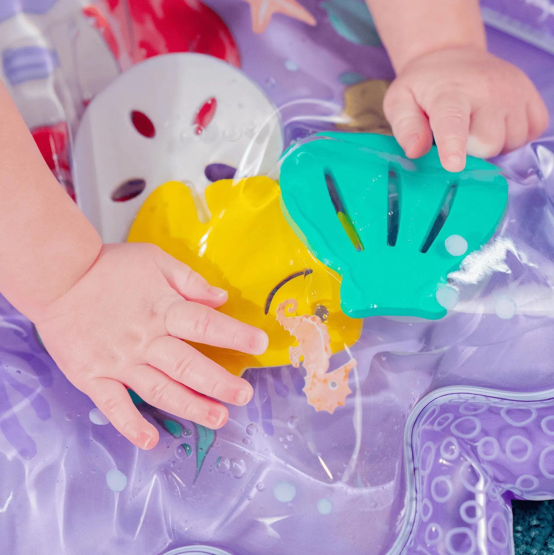 Die Wassermatte „Die kleine Meerjungfrau“ von Bright Starts ist eine bezaubernde Entdeckungsreise für dein Kind ab etwa drei Monaten. In der Bauchlage kann dein kleiner Schatz mit Disney-Prinzessin Arielle spielen und gleichzeitig wichtige Nacken- und Rückenmuskeln stärken. Die lebendigen Farben und die drei schwimmenden Teile in der Matte – Sanddollar, Muschel und Fisch – laden zum Erforschen, Schieben und Spielen ein. Die Matte ist kinderleicht zu handhaben: Einfach Wasser einfüllen und schon kann dein Liebling losspielen. Dank der hochwertigen Verarbeitung bleibt alles dicht und auch unterwegs sorgt sie für Freude: Die kompakte Größe macht sie zu einem unkomplizierten Begleiter.