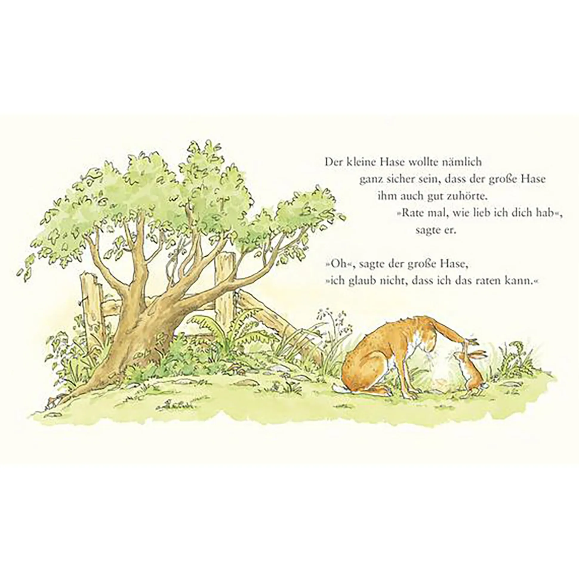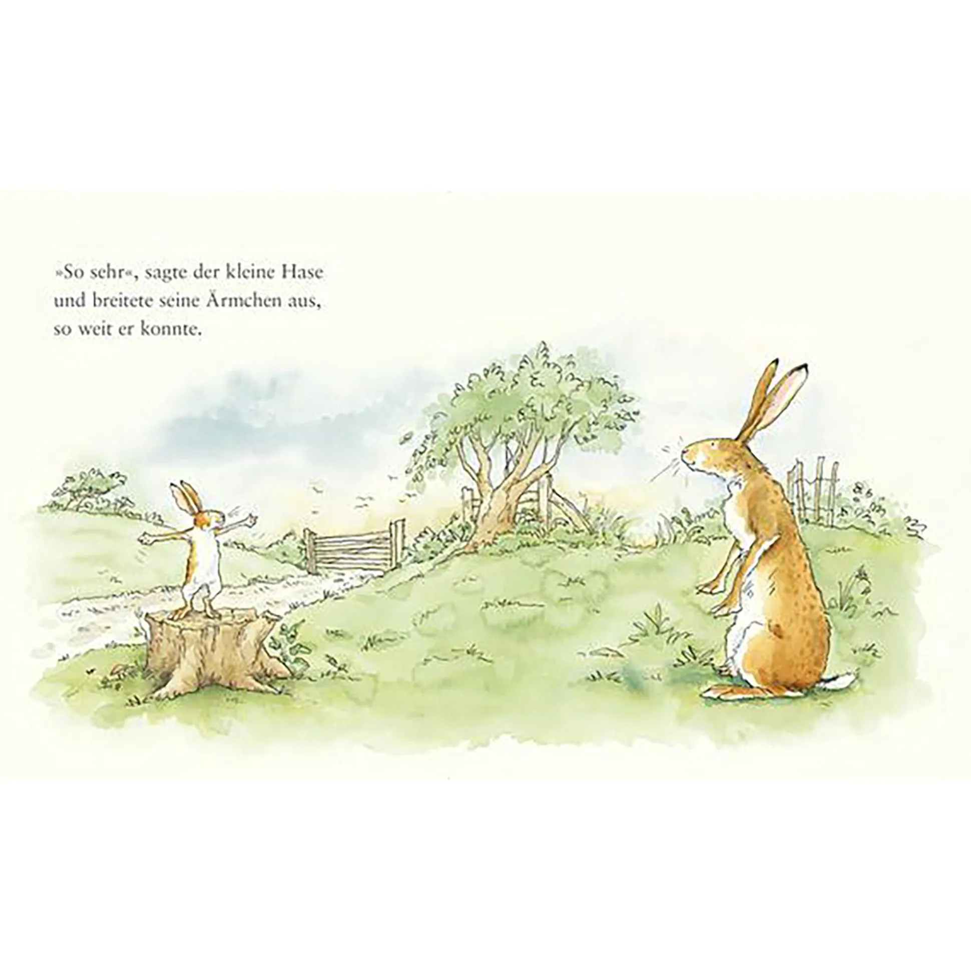 Das Buch „Weißt du eigentlich wie lieb ich dich hab?“ behandelt die Geschichte vom großen und keinen Hasen. Der kleine Hase hat den großen Hasen lieb. Wie lieb? Sooo lieb hat er ihn und breitet die Ärmchen aus. Aber die Arme des großen Hasen reichen weiter. Wie lieb man sich überhaupt haben kann, das zeigt dieses bezaubernde Buch.