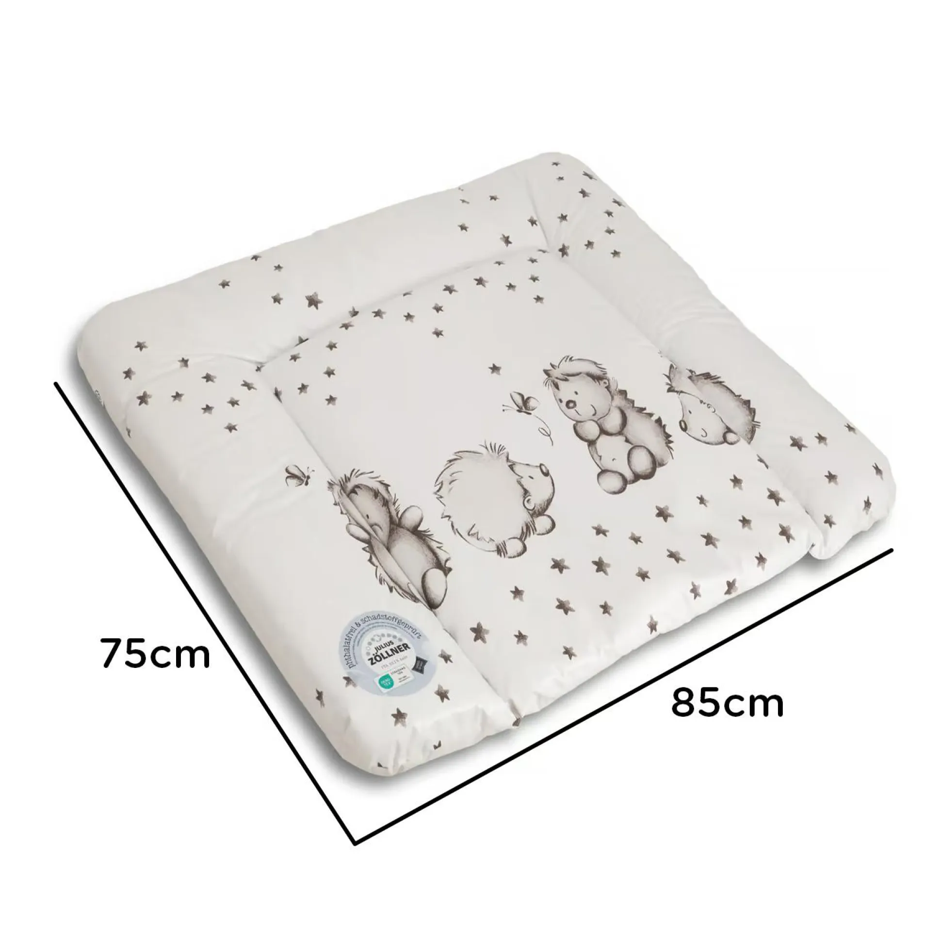 Die phtalatfreie Wickelauflage Softy im niedlichen Design Igelchen ist besonders strapazierfähig. Auf der mit weichen Polyestervlies gefüllten Auflage kannst du dein Kind optimal Wickeln und Umziehen. Die 3-fach erhöhten Seitenränder verringern zusätzlich ein herunterfallen deines Kindes von der Wickelkommode. Die Wickelauflage lässt sich pflegeleicht mit einem angefeuchteten Tuch mit lauwarmen Wasser und Neutralseife abwischen.