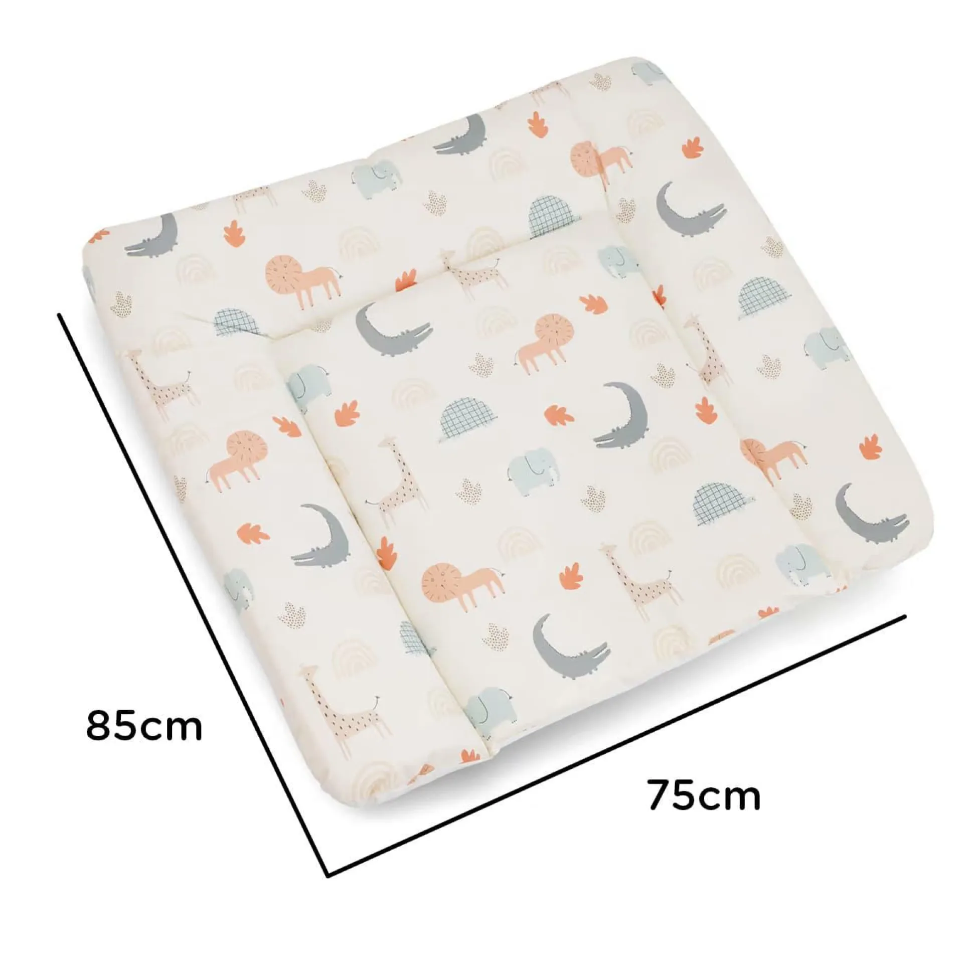Die 75 x 85 cm große Julius Zöllner Wickelauflage Softy im liebevoll gestalteten Design „Wild Friends“ ist dank ihrer Füllung aus hochwertigem Polyestervlies besonders weich und gemütlich. Der Rand ist an 3 Seiten erhöht und schützt deinen Nachwuchs so zuverlässig vor den harten Rändern der Wickelkommode.