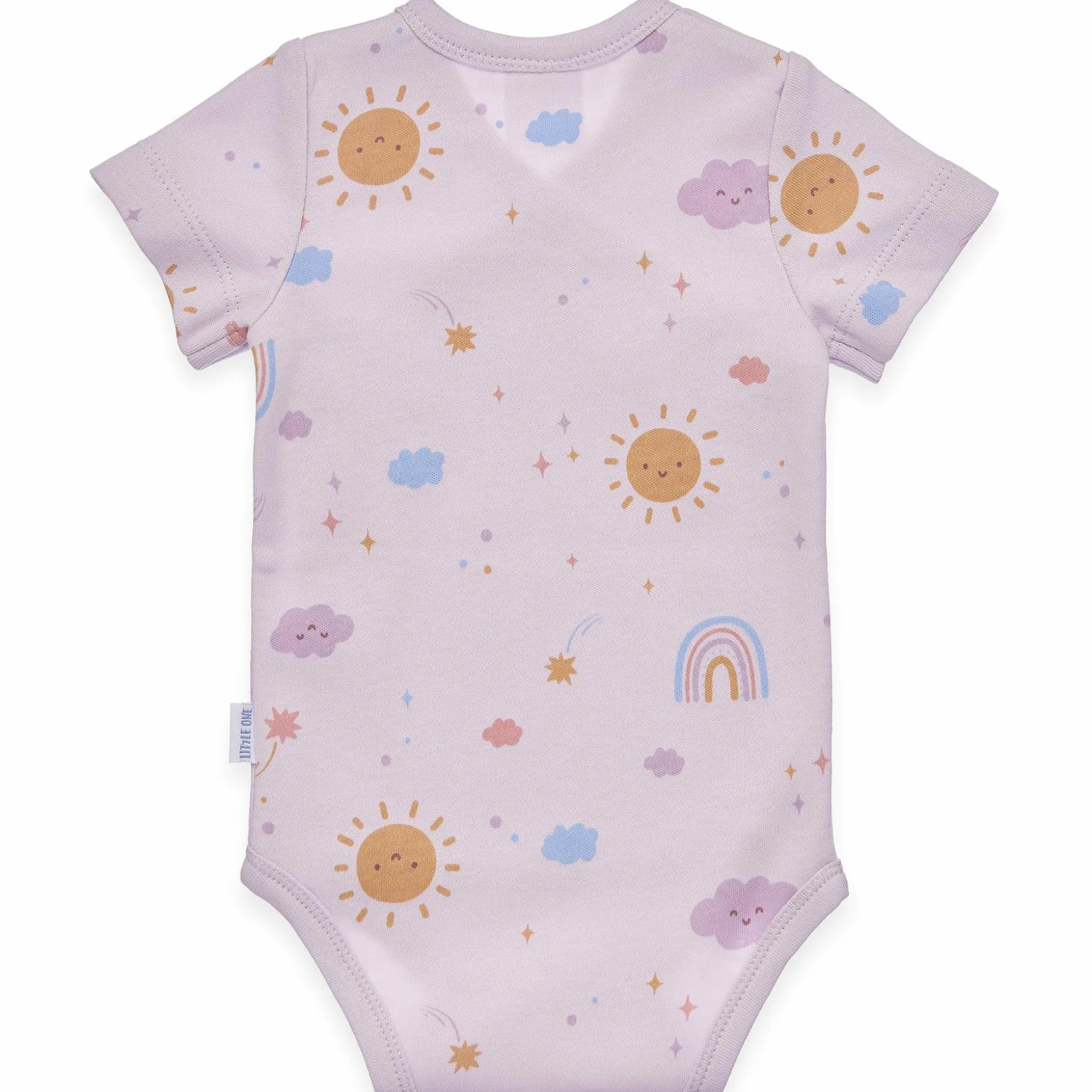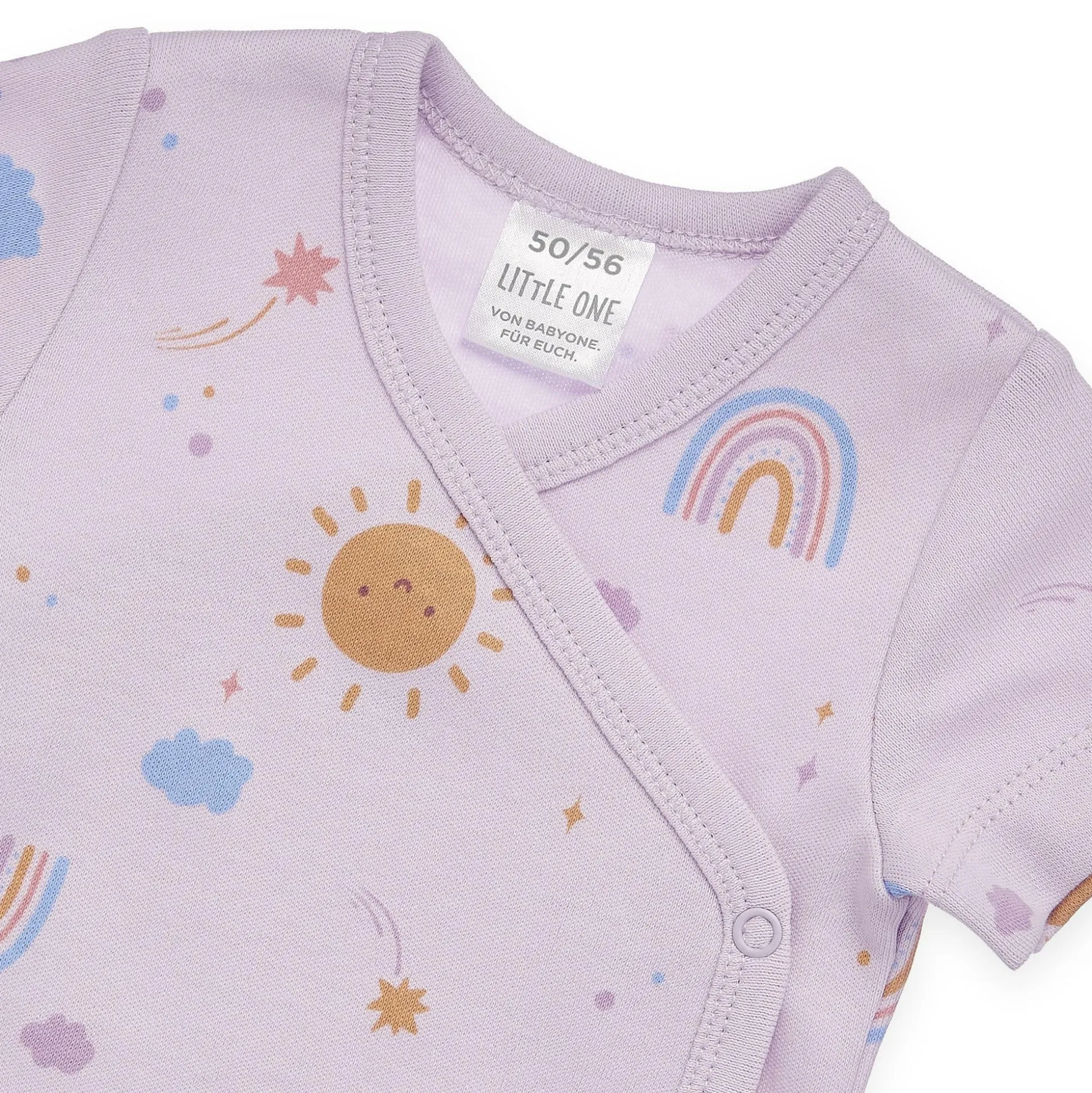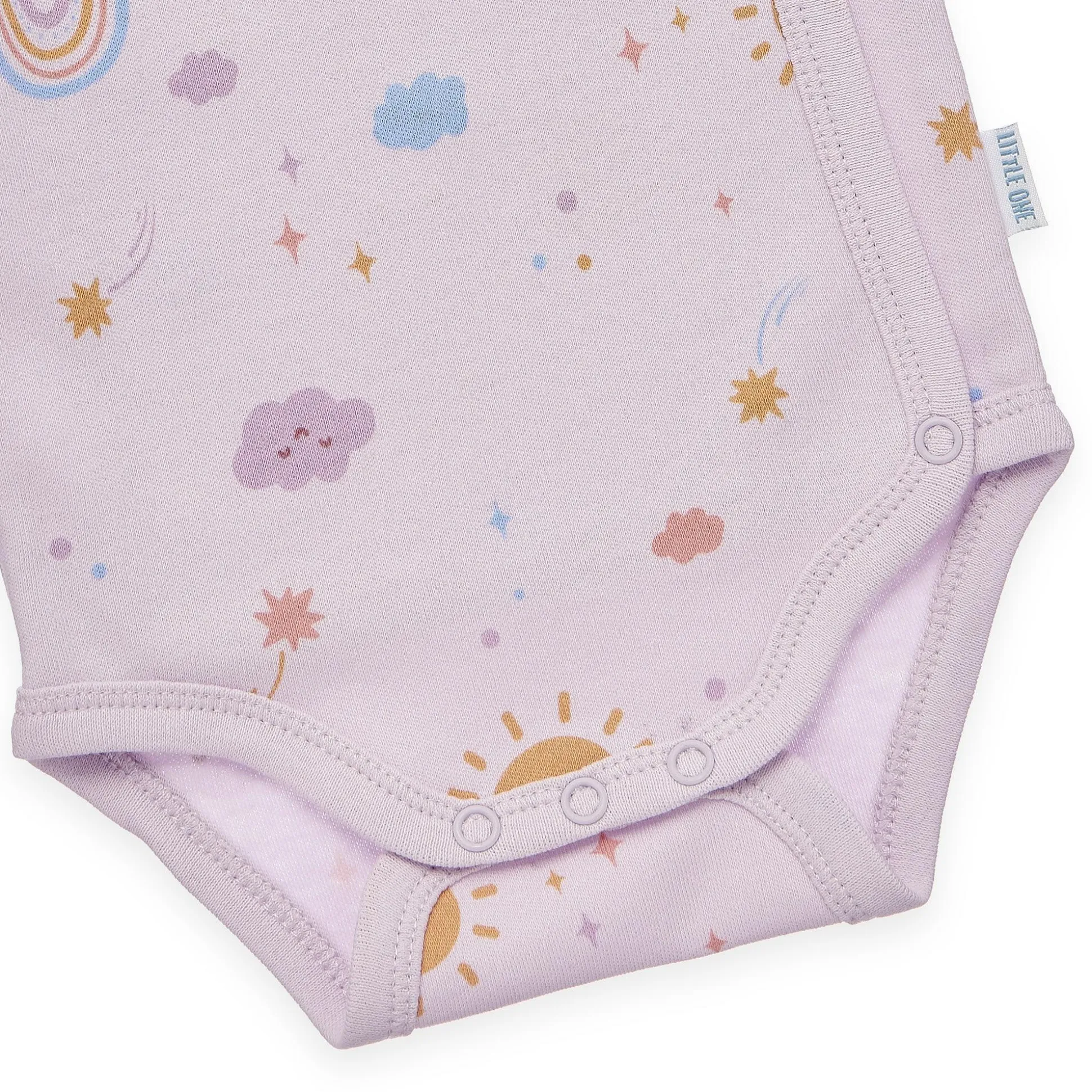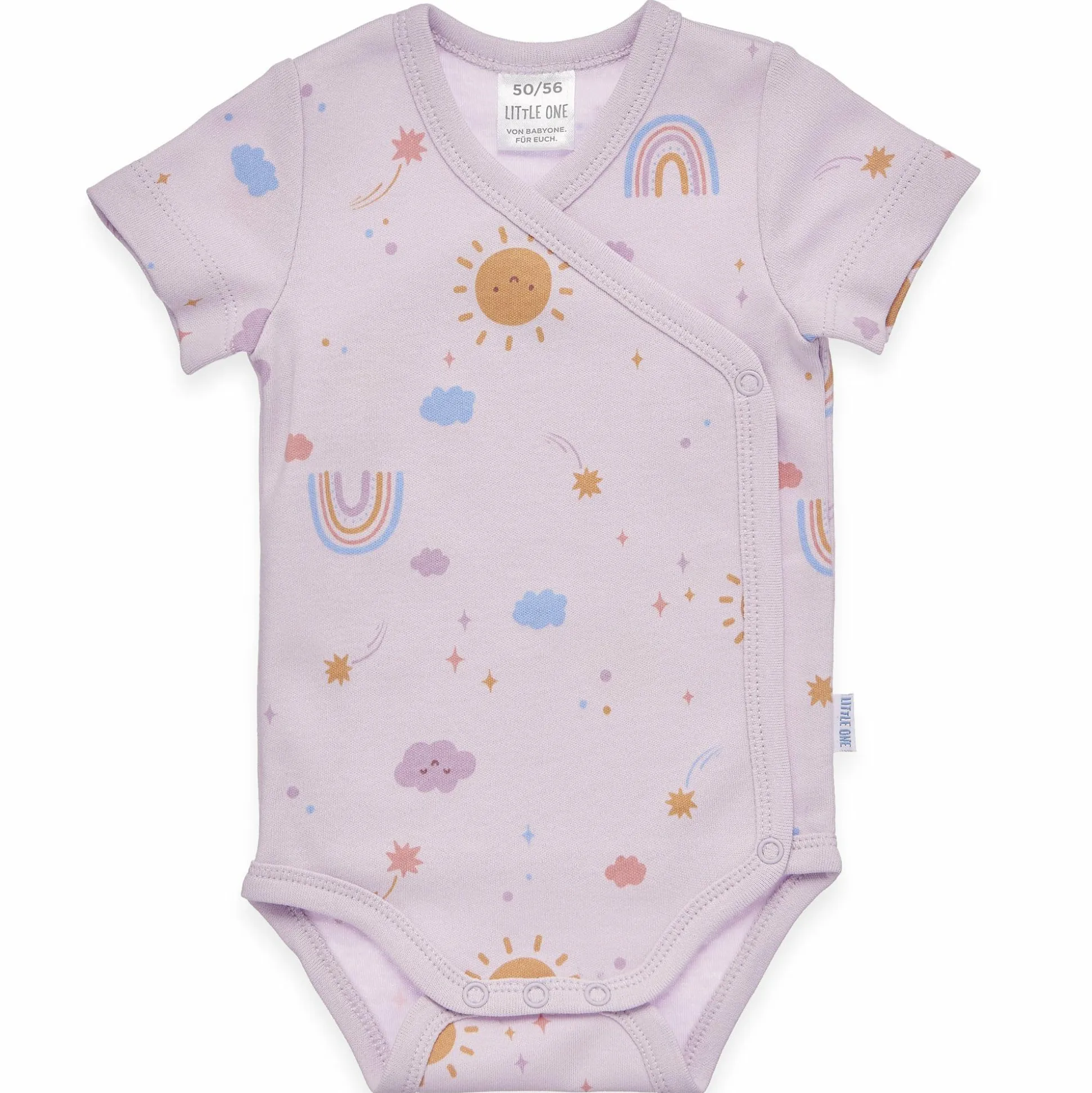 Der Wickelbody Happy Sky von LITTLE ONE ist perfekt für die zarte Haut deines Schatzes und überzeugt mit hochwertiger 100% Baumwolle, die besonders weich und angenehm zu tragen ist. Das praktische Wickeldesign mit Druckknöpfen erleichtert dir das An- und Ausziehen, sodass dein Nachwuchs sich rundum wohlfühlt.