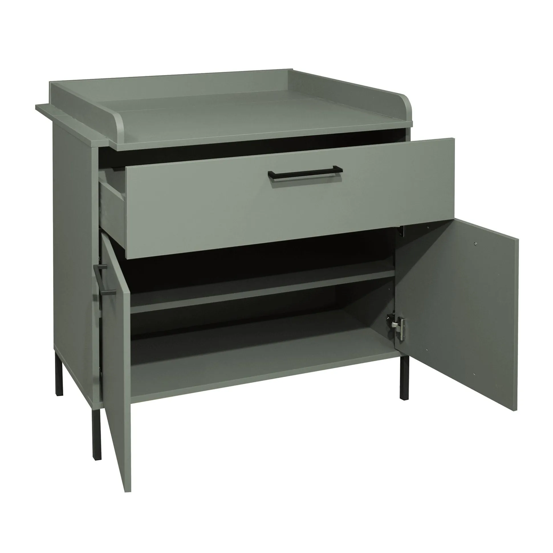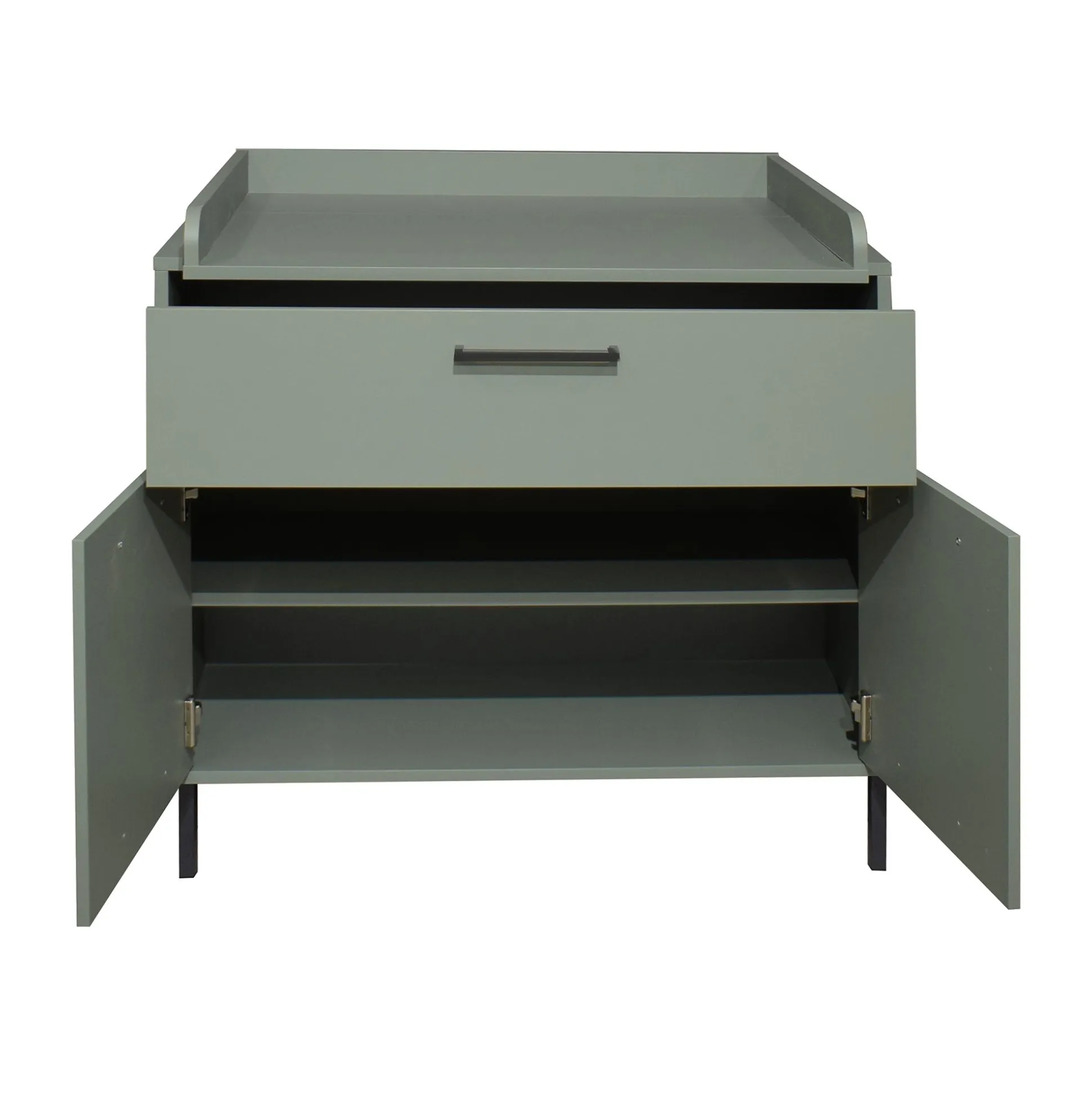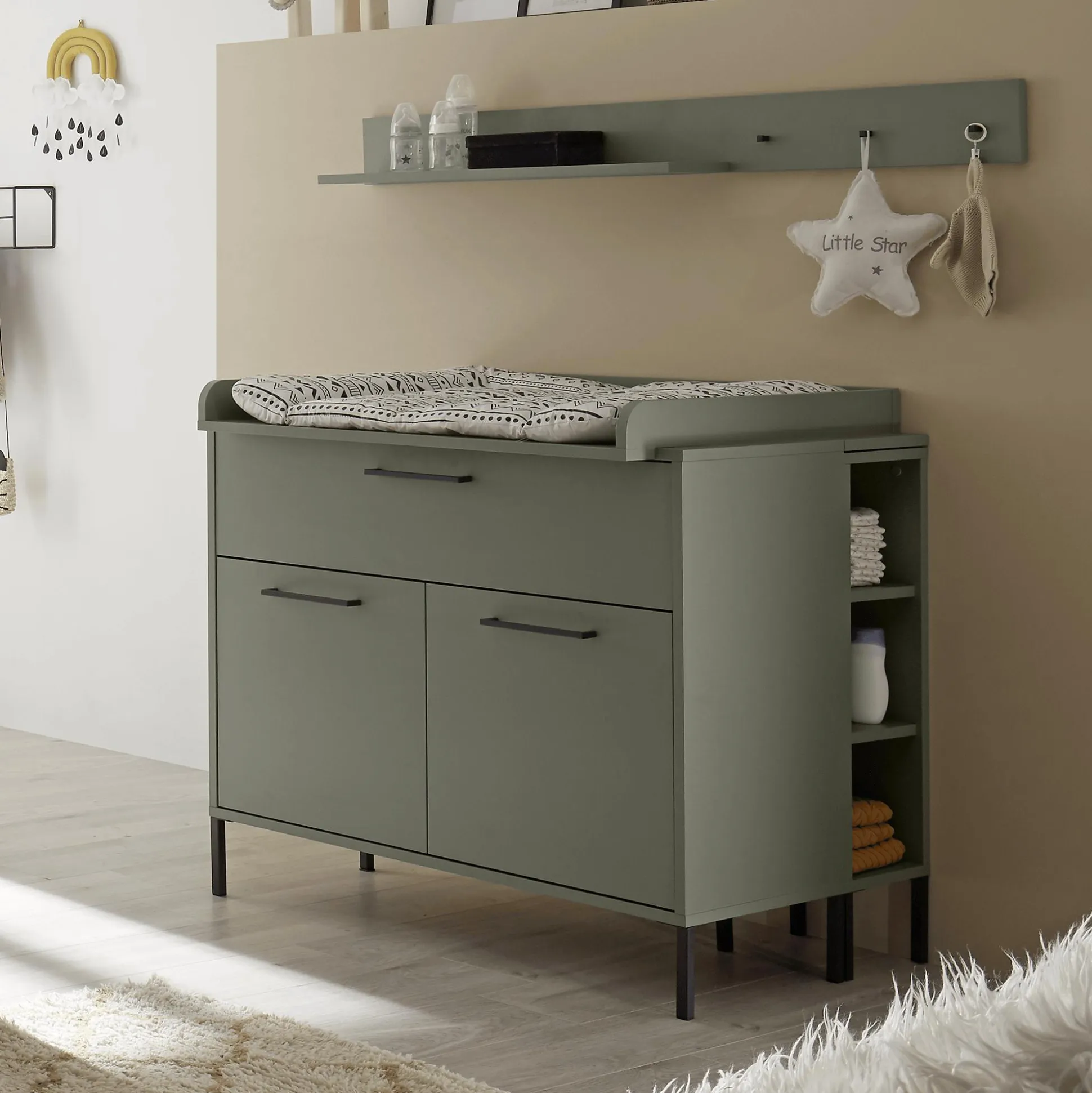 Sie ist aber nicht nur funktional: Auch das Design fügt sich hervorragend in jedes Kinderzimmer ein, denn das matte Kieferngrün der Wickelkommode verleiht jedem Raum eine gemütliche Atmosphäre.