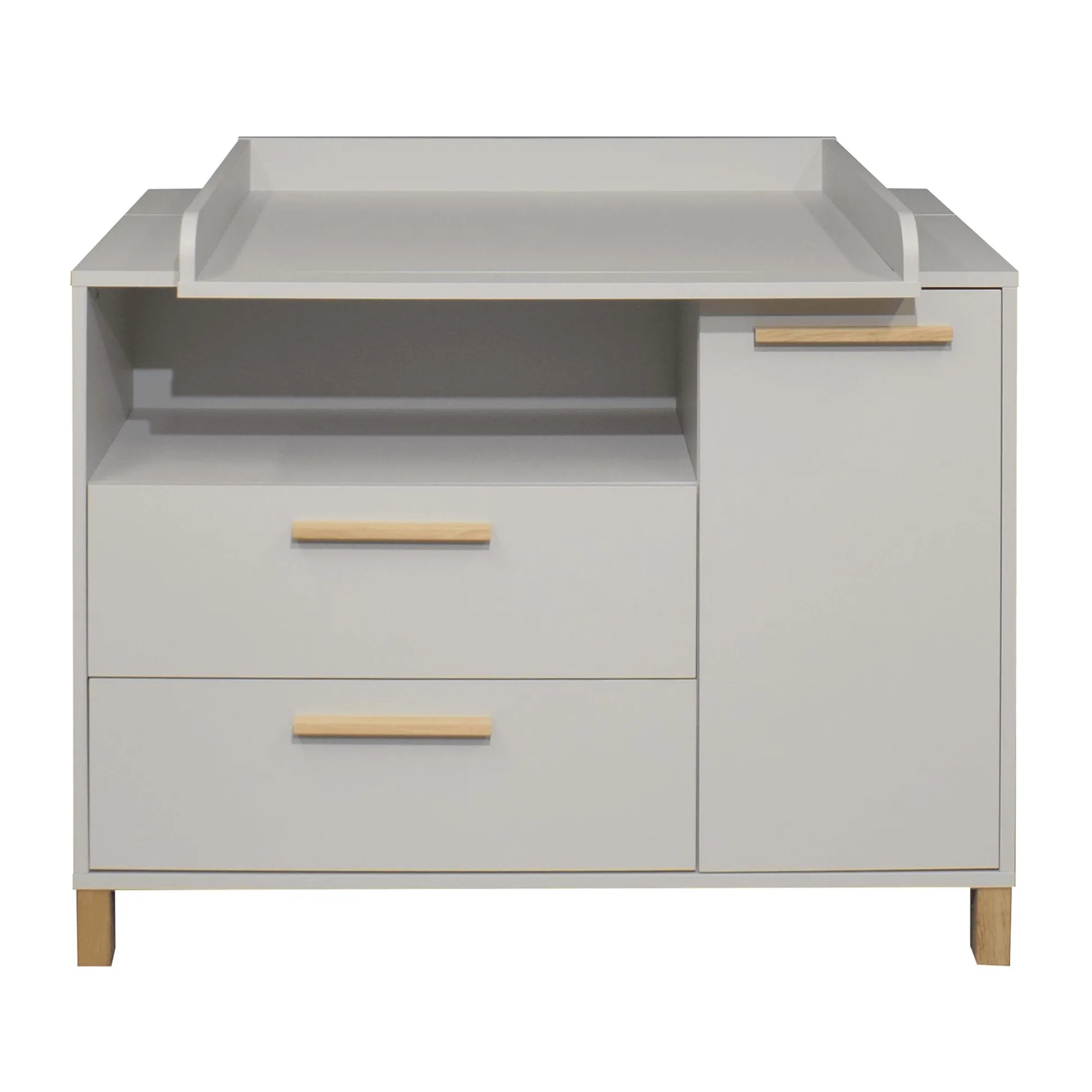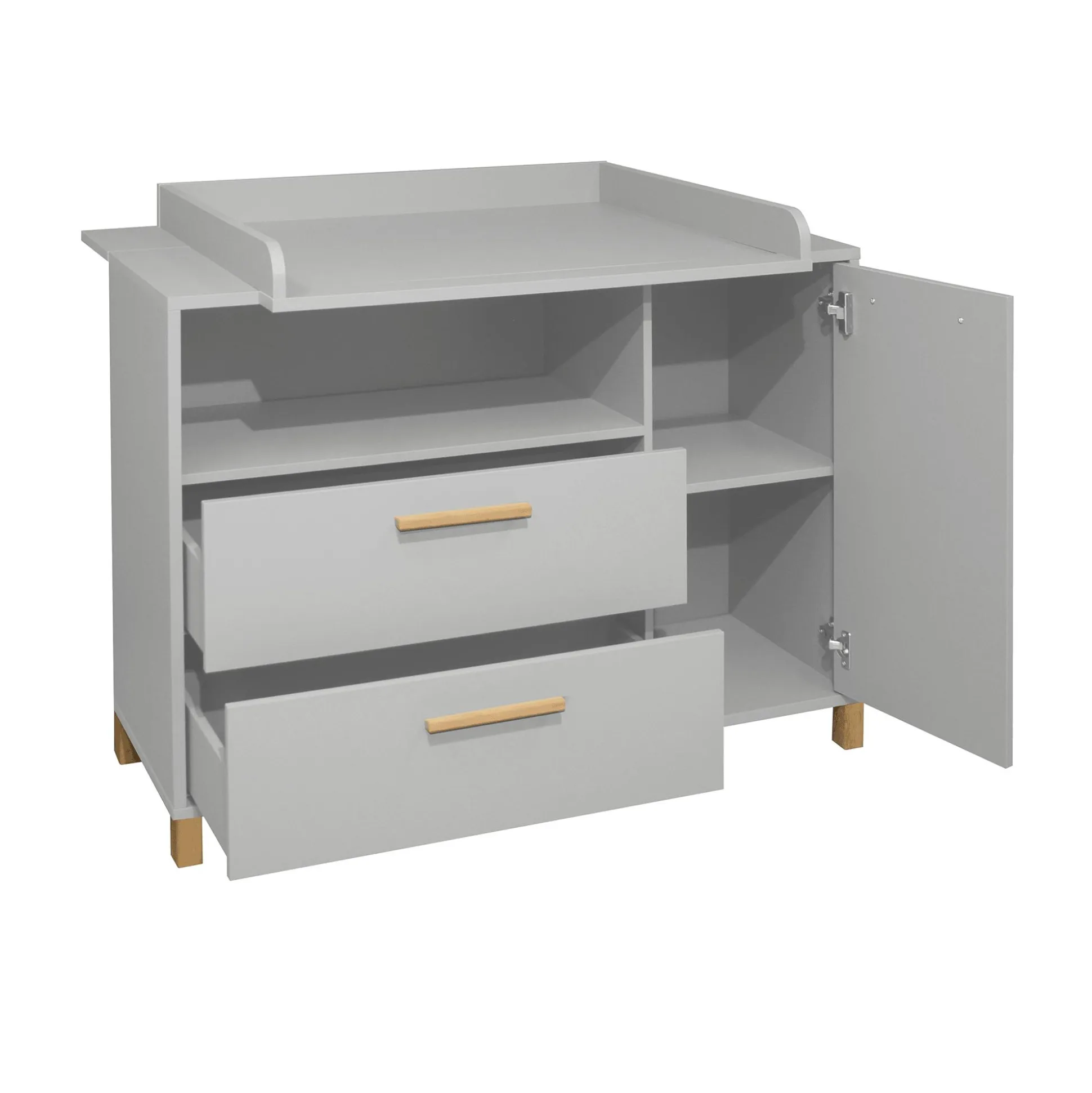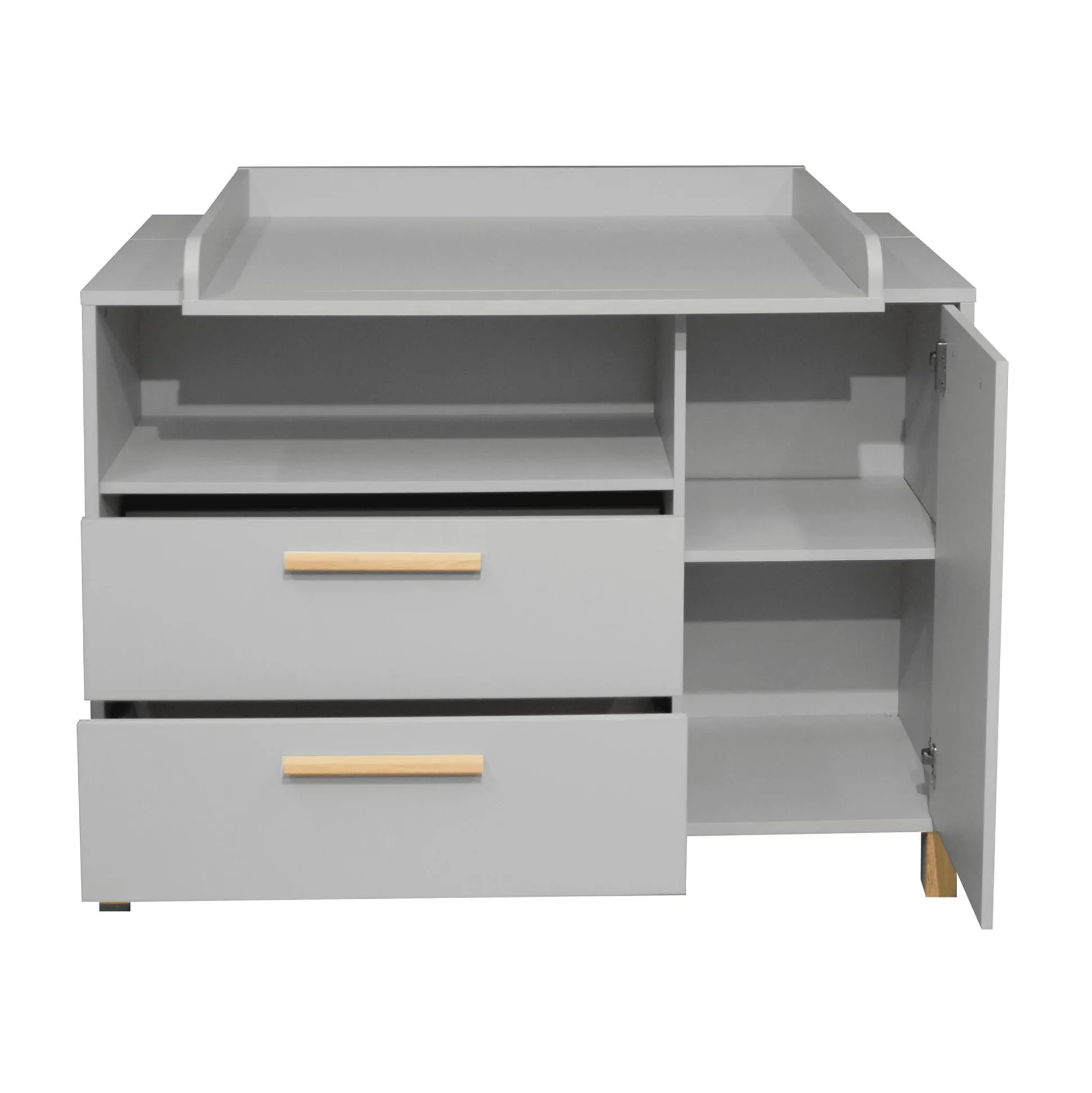Mit der breiten Wickelkommode „Olivia“ von Mäusbacher wird das Wickeln zu einem Kinderspiel. Der integrierte Wickelaufsatz erleichtert das Windeln wechseln und sorgt für einen sicheren Halt. Damit du währenddessen die wichtigsten Utensilien griffbereit hast, wurde die Kommode mit ausreichend durchdachtem Stauraum ausgestattet. In den zwei geräumigen Schubkästen, dem offenen Fach und hinter der Drehtür mit einem Mittelboden ist genug Platz für Windeln, Kleidung und weitere Wickelsachen.