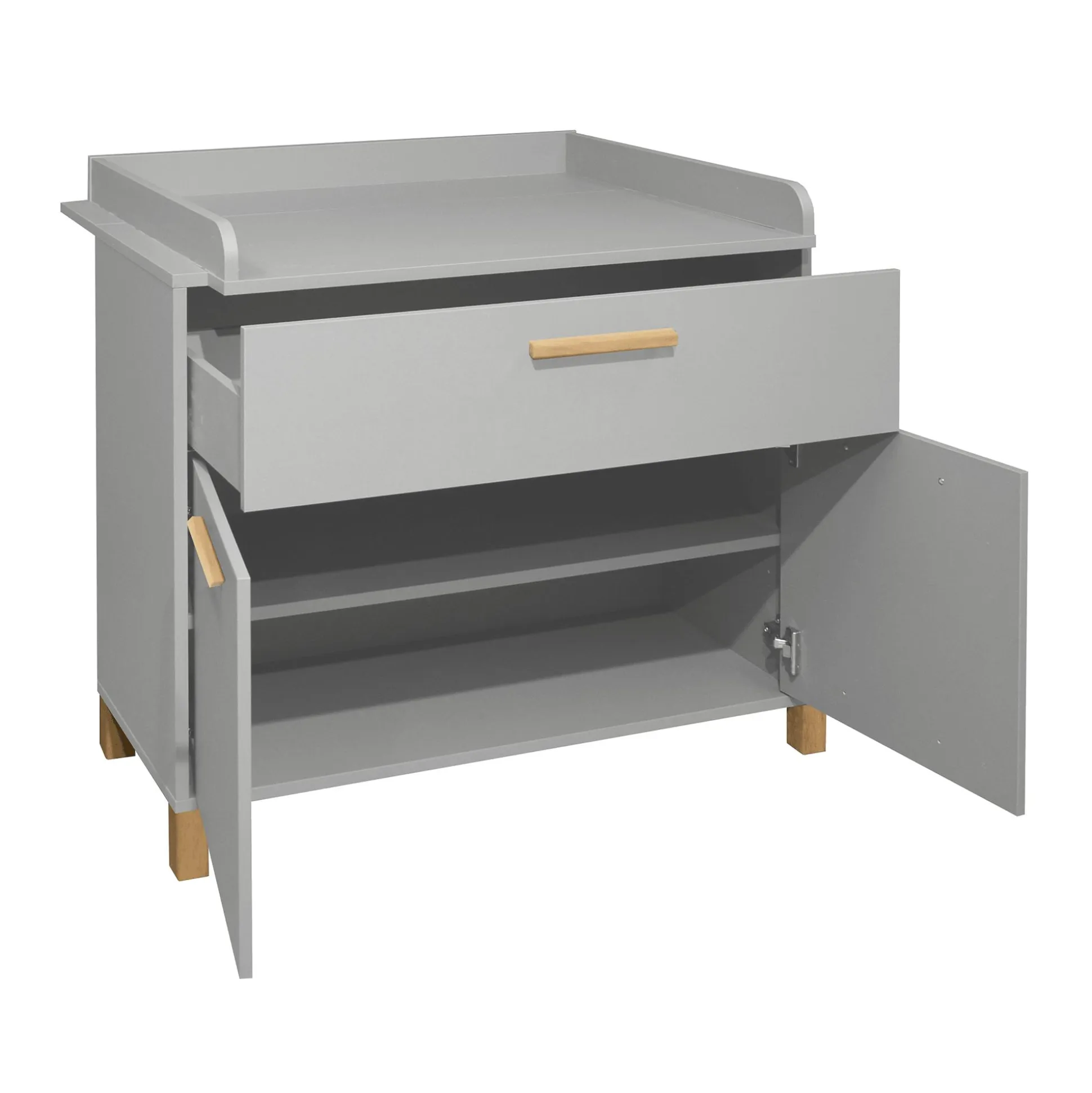 Mit der schmalen Wickelkommode „Olivia“ von Mäusbacher wird das Wickeln zu einem Kinderspiel. Der integrierte Wickelaufsatz erleichtert das Windeln wechseln und sorgt für einen sicheren Halt. Damit du währenddessen die wichtigsten Utensilien griffbereit hast, wurde die Kommode mit ausreichend durchdachtem Stauraum ausgestattet. In dem Schubkasten und hinter den beiden Drehtüren mit einem Mittelboden ist genug Platz für Windeln, Kleidung und weitere Wickelsachen.