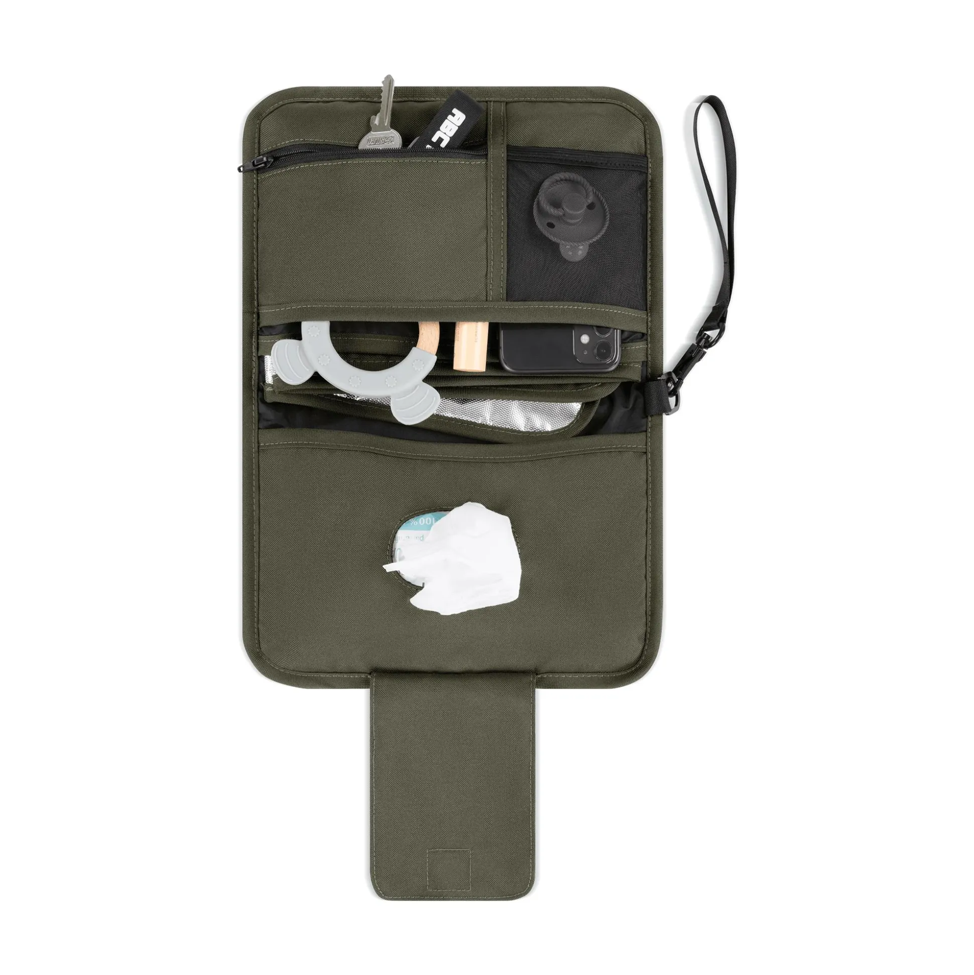 Ob im Café, auf Reisen oder im Alltag – der elegante ABC Design Wickelorganizer Classic im Design Avocado ist der perfekte Begleiter für alle Eltern, die Wert auf Stil und Praktikabilität legen. Diese kompakte Tasche ist viel kleiner und handlicher als eine herkömmliche Wickeltasche, passt in die Handtasche und bietet dennoch genug Platz für alles Wichtige unterwegs mit Baby.Der Organizer Classic überzeugt durch wasserabweisende Stoffe und wasserdichte Reißverschlüsse, die deine Utensilien zuverlässig vor Nässe und Schmutz schützen. Das praktische Außenfach mit Reißverschluss ermöglicht schnellen Zugriff auf deine wichtigsten persönlichen Gegenstände wie Geldbeutel oder Schlüssel.Im großen Innenfach findest du zwei Utensilientaschen mit Gummizugband, die für eine optimale Organisation deiner Wickelutensilien wie Windeln und Feuchttücher sorgen. Eine besondere Ausstattung deiner Windeltasche ist die integrierte Wickelauflage mit Thermobeschichtung auf der Unterseite, die dein Baby vor kalten oder warmen Untergründen schützt. Die funktionale Aufteilung und Ausstattung ermöglichen dir überall ein unkompliziertes Wickeln. Mit der praktischen Trageschlaufe kannst du den Organizer bequem transportieren.