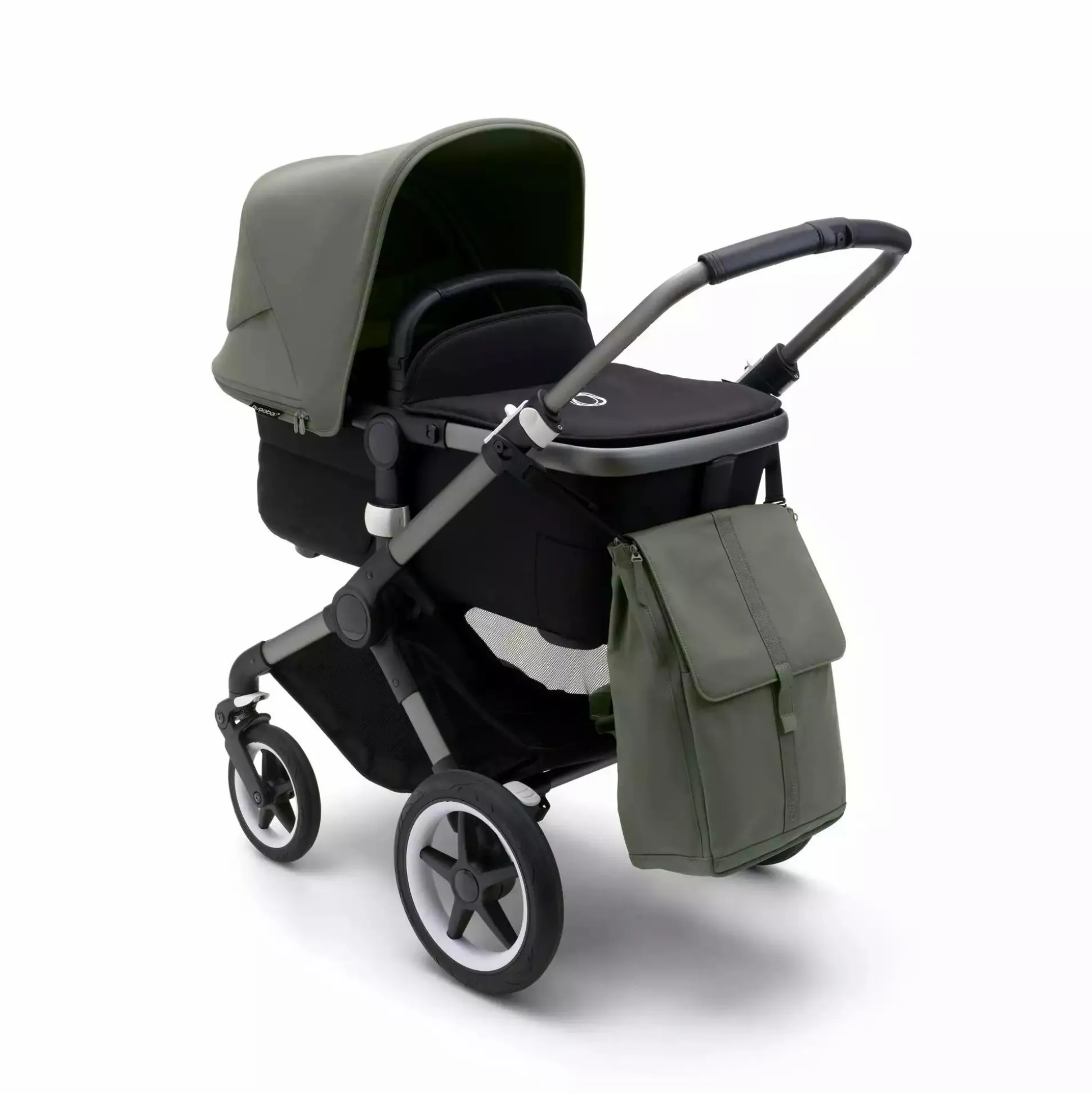 Der Wickelrucksack Forest Green von Bugaboo ist aus 100 % zertifizierten recycelten Materialien gefertigt. Er ist zudem außen regenfest sowie wasserabweisend, innen auslaufsicher und passt perfekt auf deinen Bugaboo Kinderwagen.