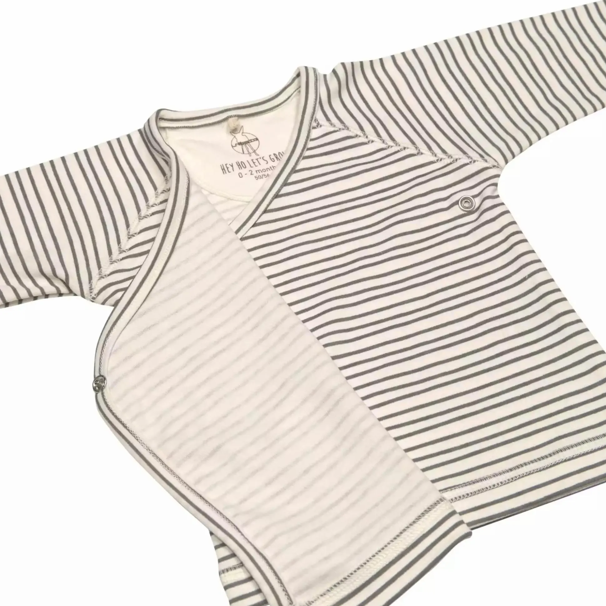 Der praktische Wickelverschluss mit Druckknöpfen, hat den Vorteil, dass der Kimono nicht über den empfindlichen Kopf der Neugeborenen angezogen werden muss. So ist ein bequemeres und einfacheres An- und Ausziehen in den ersten Monaten garantiert.