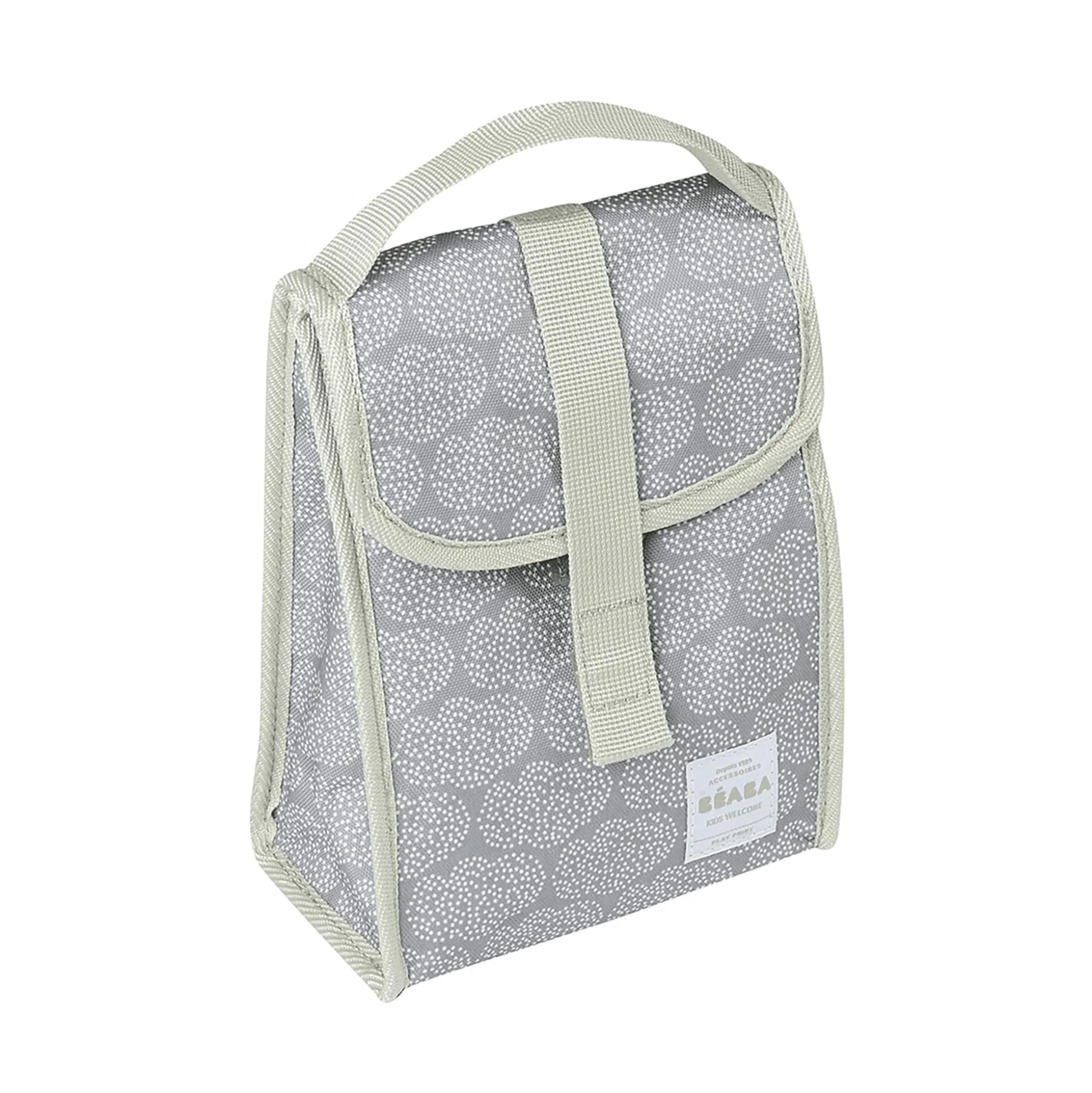 Die Wickeltasche Geneve II im Design Playprint Tiny Clouds von BÉABA ist ein praktischer Begleiter auf Reisen und erleichtert deinen Alltag. Eine gepolsterte, waschbare Wickelunterlage, eine Schnullertasche und eine isothermische Essenstasche erhältst du inklusive.
