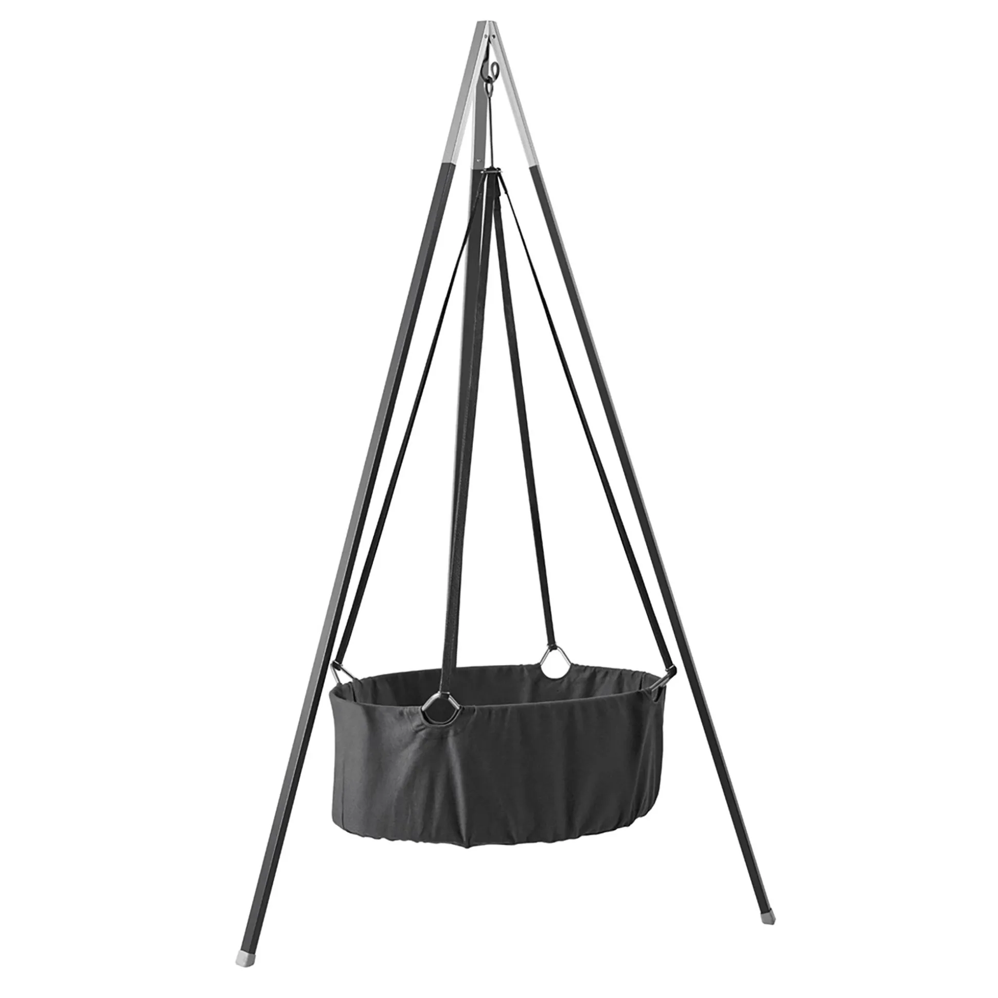 Ebenfalls optional erhältlich ist ein dreibeiniges Wiegen-Gestell aus Aluminium, das ebenso dekorativ wie praktisch ist: Da der Dreibein-Ständer mit wenigen Handgriffen zusammengeklappt bzw. aufgestellt ist, kann er überall dort genutzt werden, wo du gerade bist. So verspricht das mobile Aluminiumgestell maximale Flexibilität und ist auch zum Reisen ideal.