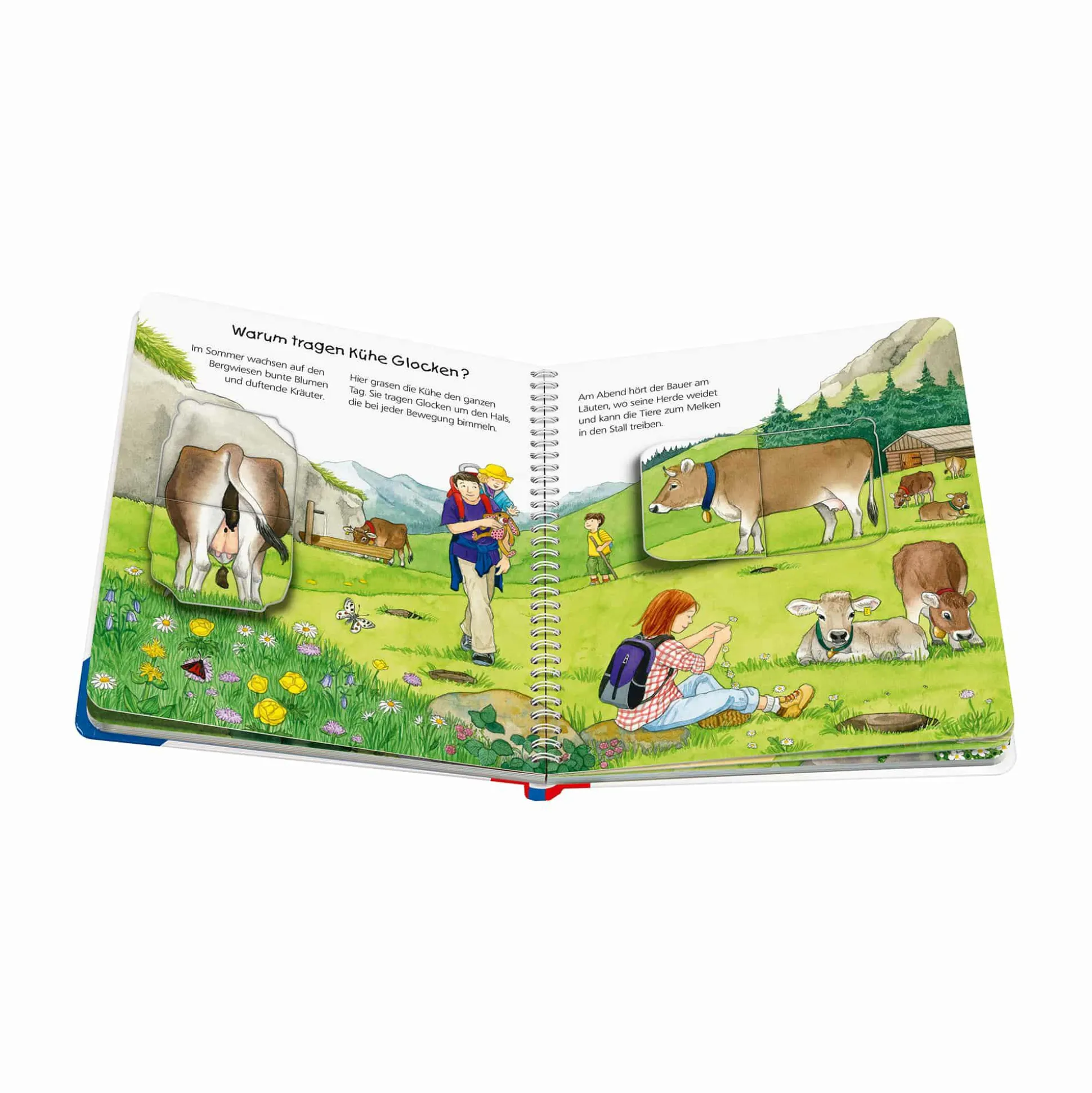 Darüber hinaus werden auf dem Bergbauernhof die Ziegen gemolken und die Seilbahn fährt gerade ins Tal zurück. Viele Klappen und spannende Infos veranschaulichen deinem Schatz, was es in diesem Lebensraum alles zu entdecken gibt.