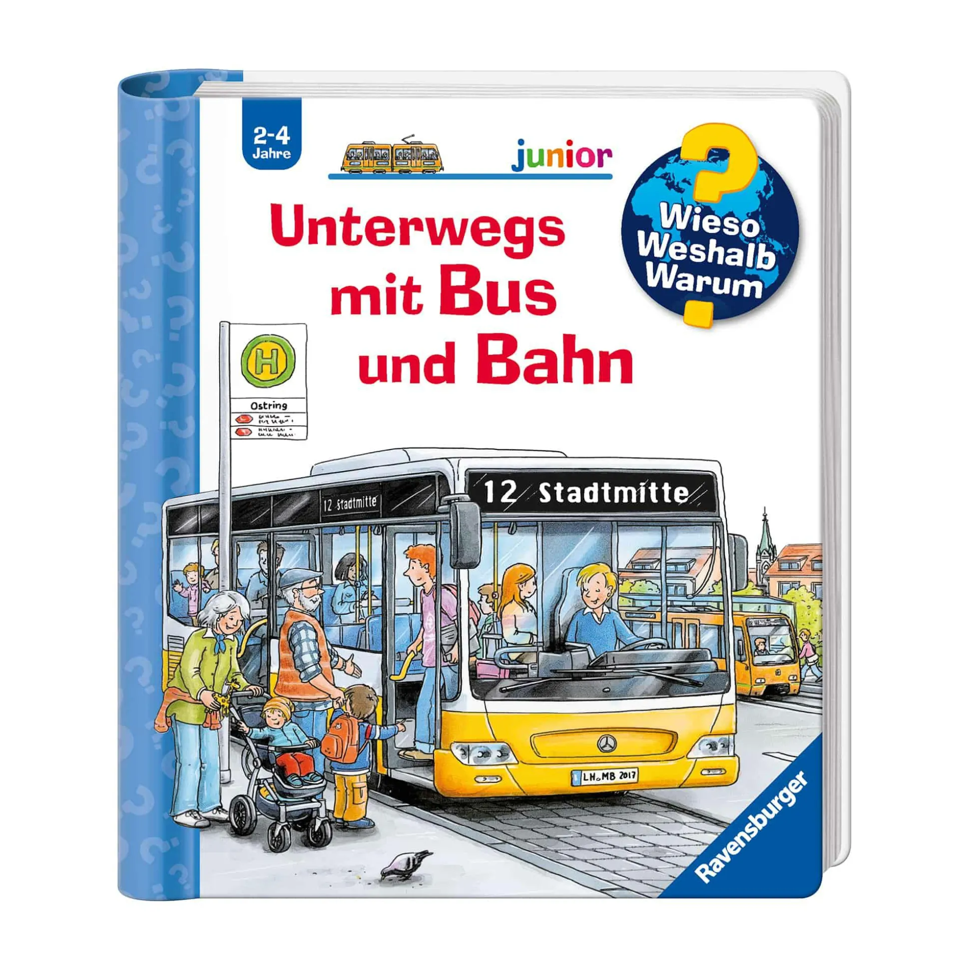 Das Buch „Wieso? Weshalb? Warum? junior, Band 63: Unterwegs mit Bus und Bahn“ von Ravensburger vermittelt deinem kleinen Nachwuchs mithilfe von Klappen erstes Wissen über Bus, Straßenbahn und U-Bahn.
