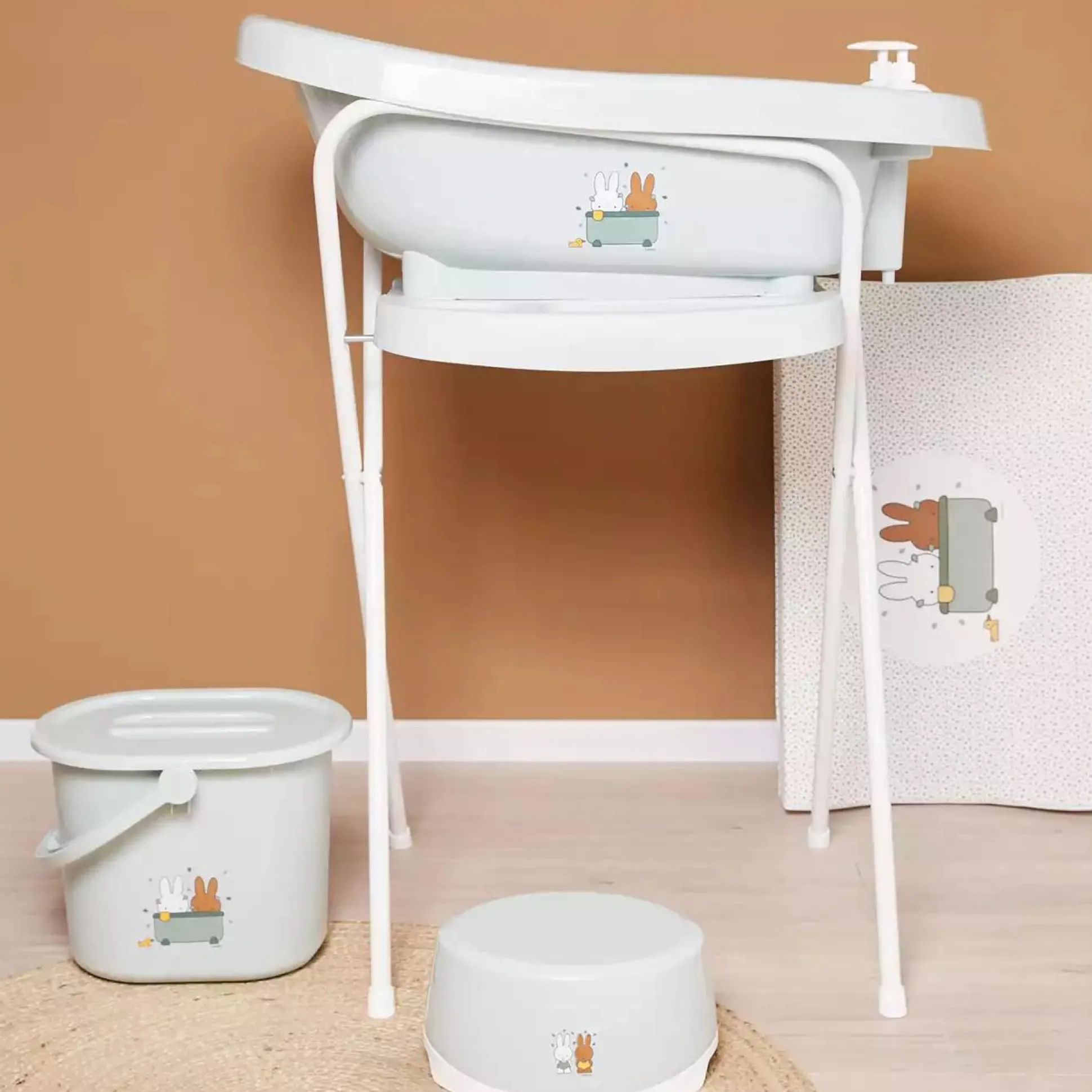 Insgesamt passt ein Fassungsvermögen von ca. 13 Litern in den Windeleimer. Dadurch kannst du die Badewanne von bébé-jou bis zur empfohlenen Höhe füllen. Ein wunderschönes Motiv mit Miffy und Melanie verziert den Eimer.