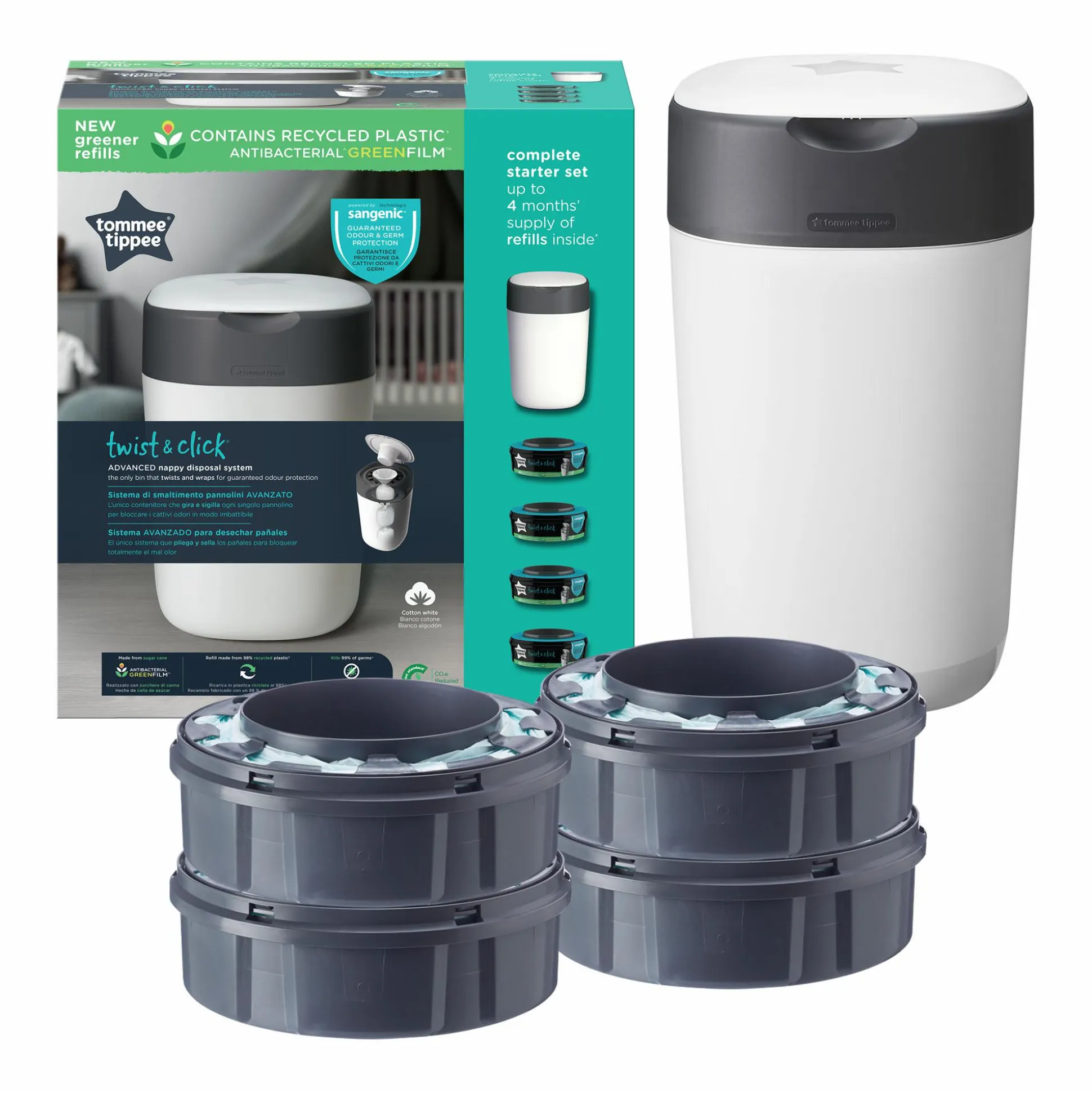 Der praktische Windeleimer Twist & Click von tommee tippee ist ein platzsparendes Windelentsorgungssystem, das dir dabei hilft, unangenehme Gerüche zu verhindern und Keime einzuschließen, da jede Windel einzeln eingedreht wird. Der integrierte Stopfer drückt die Windel tief in den Eimer, so sind alle unangenehmen Gerüche dank des dicht schließenden Systems eingeschlossen.