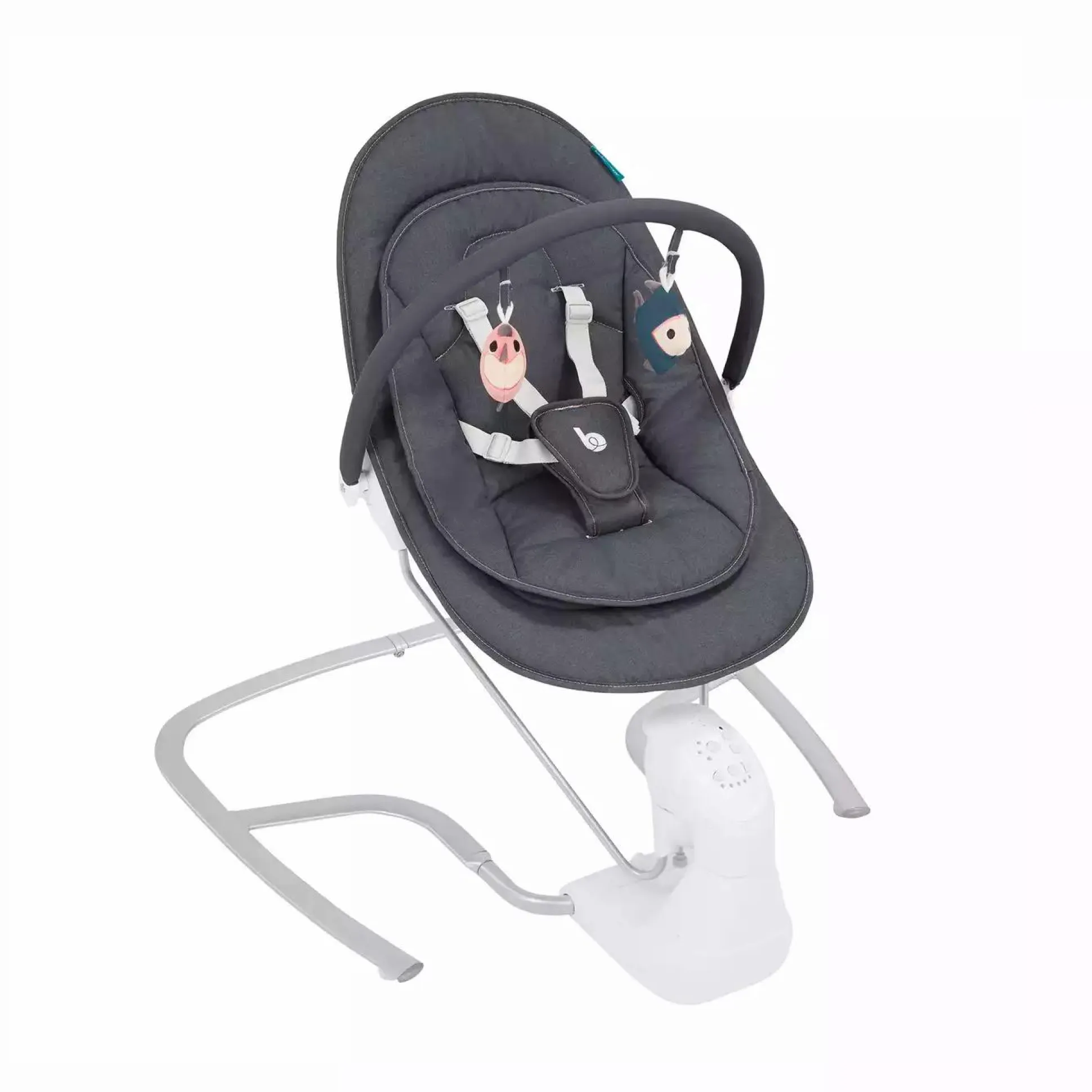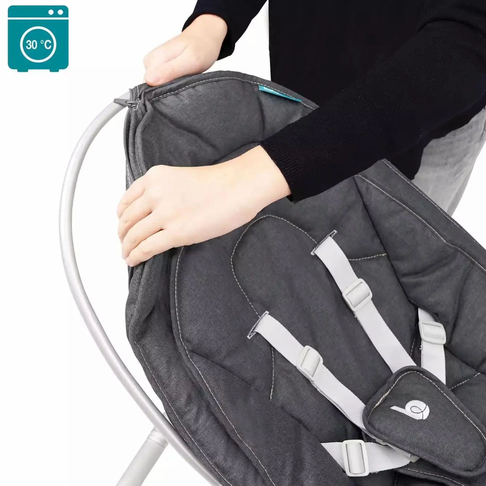 Die Swoon Touch Babywippe ist sehr komfortabel und mit einem ergonomischen Reduzierkissen für Neugeborene ausgestattet, welches sich an den kleinen Babykörper wunderbar anpasst. Die 2 verschiedenen Neigungspositionen der Wippe (Ruhe- oder Aufwachmodus) und 5 unterschiedliche Schaukelgeschwindigkeiten stellen sicher, dass die Bedürfnisse deines Kindes stets gewahrt werden.
