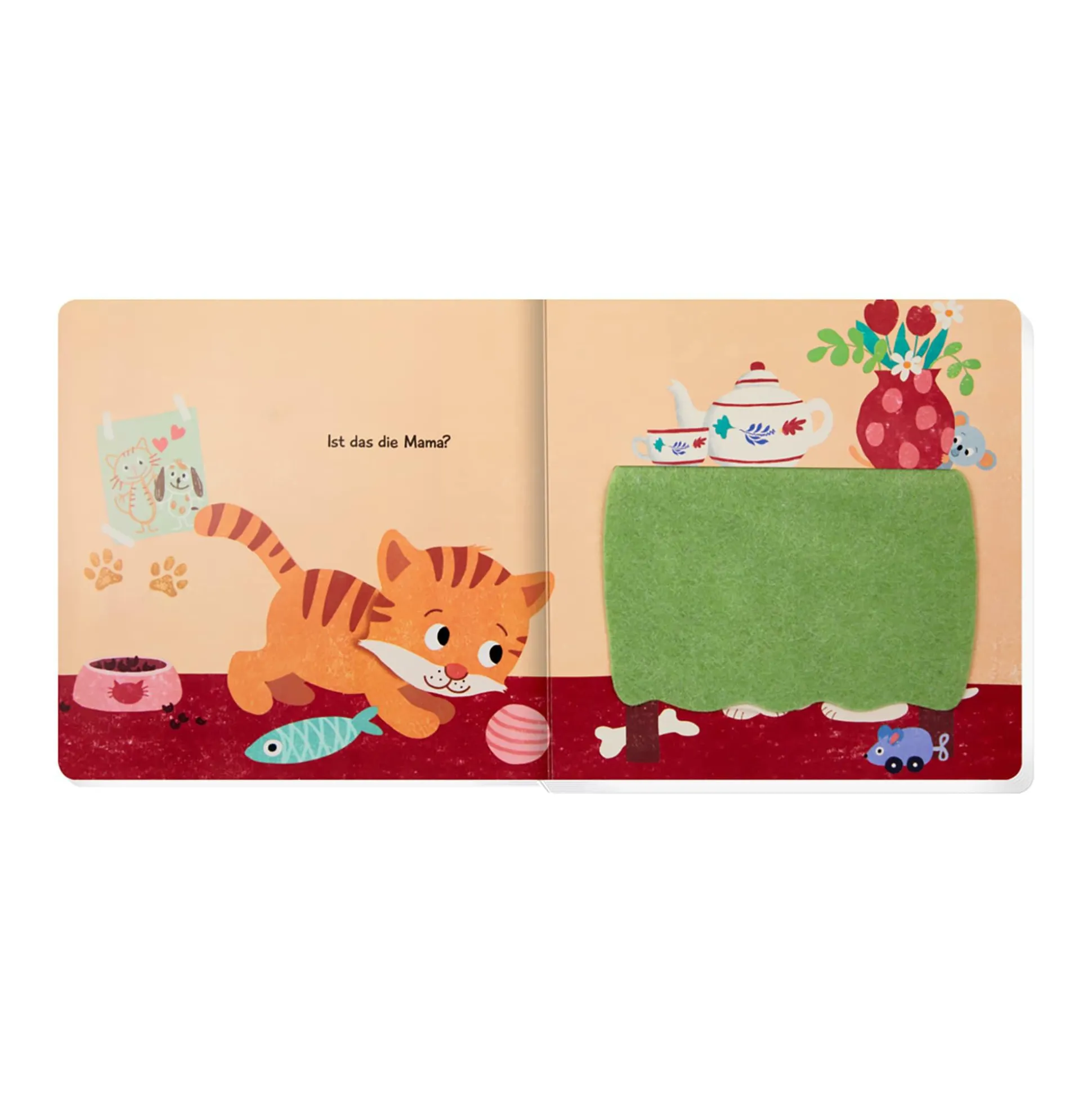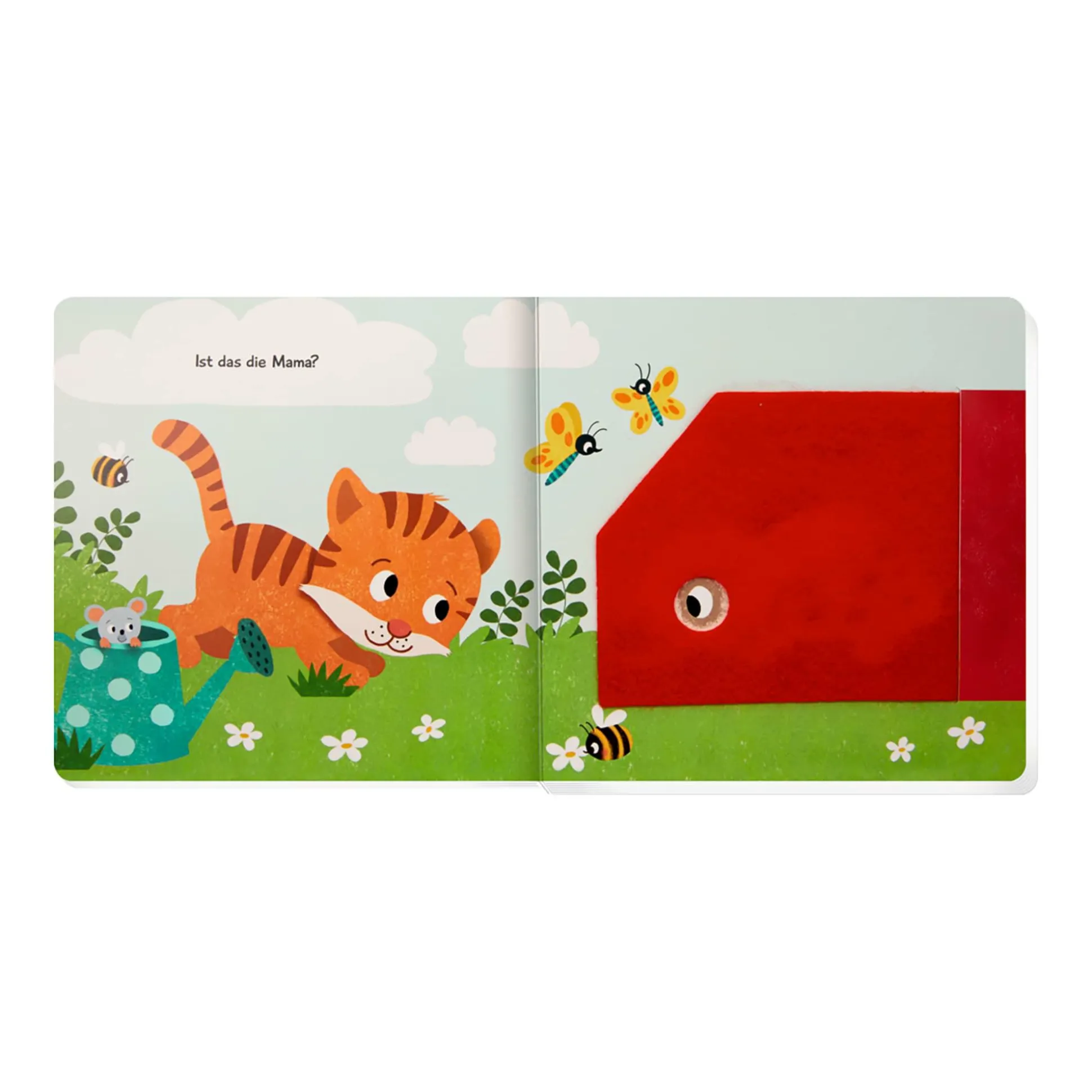 Mit kuschelweichen Klappen, einem Spiegel und einfachem Text zum Mitsprechen und Mitspielen. Beliebtes Kuckuck-wer-ist-da?-Prinzip.