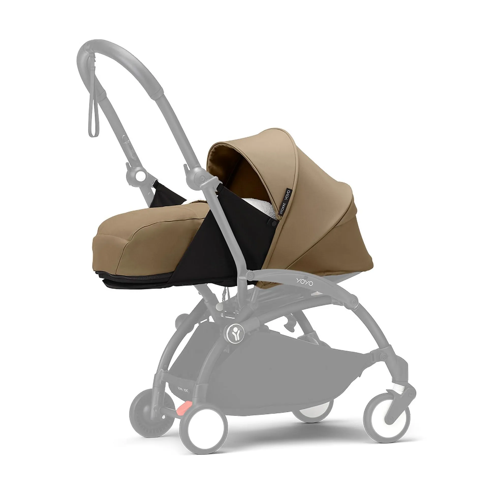 Mit dem YOYO³ Neugeborenen-Set im Design Toffee von Stokke verwandelt sich dein YOYO³ Buggy in einen Kinderwagen für Babys ab Geburt.Wenn du unterwegs bist liegt dein Baby bequem auf seiner kuschelig weichen Nestchenauflage, die speziell für Neugeborene entworfen wurde. Das 0+ Neugeborenen-Set ermöglicht es dir, dein Baby – dir zugewandt – ganz flach und dank des 5-Punkt-Gurtes absolut sicher abzulegen. Das Sonnenverdeck bietet UV 50+ und ist wasserabweisend. Das Set kann bis 30° C in der Waschmaschine gereinigt werden. Dank des YOYO³ Neugeborenen-Set ist die Reise mit dem Flugzeug auch möglich. Einfach handlich zusammengefaltet passt es ins Handgepäckfach.