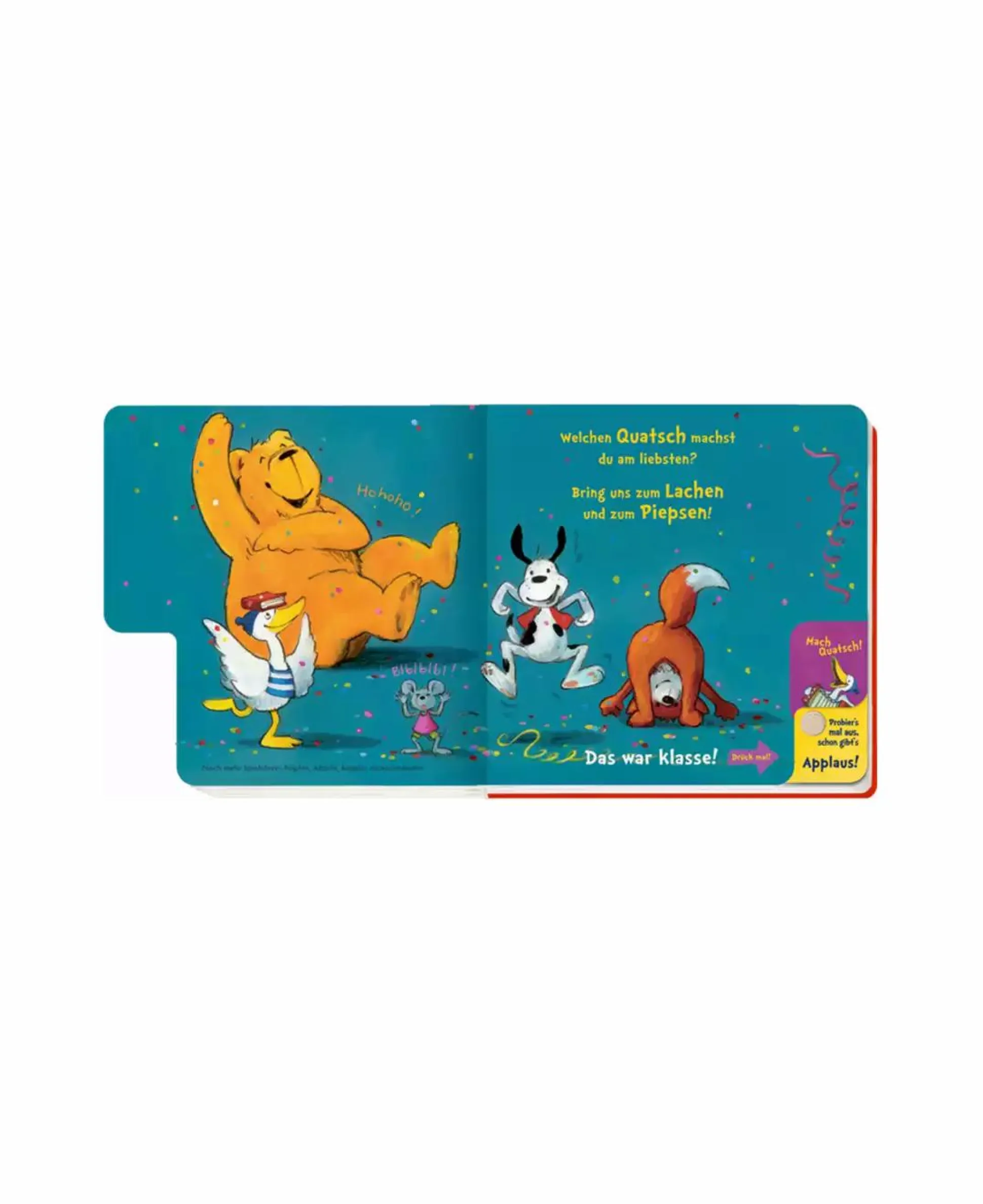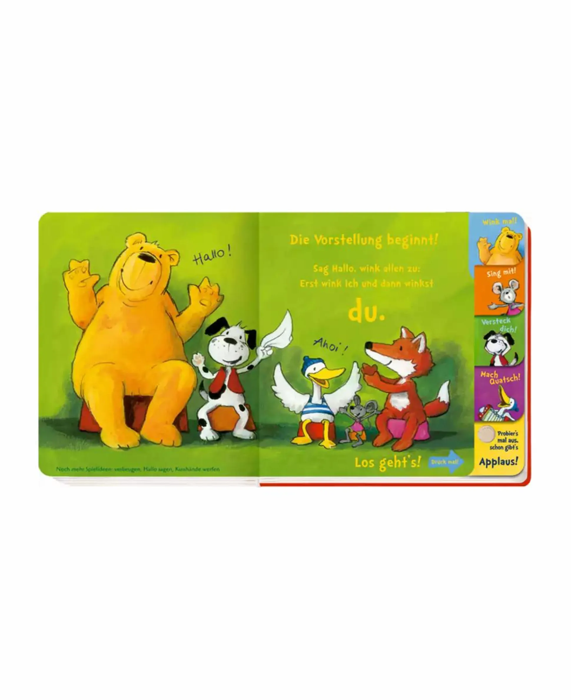 Plötzlich geht der Vorhang auf und die Scheinwerfer an! Die fünf Freunde aus dem Buch zeigen, was sie alles können. Sie singen, tanzen und machen lustigen Unfug. Mitmachen und applaudieren ist hier gefragt. Der Sound regt dazu an, mit zu klatschen und den Fünfen zu applaudieren.
